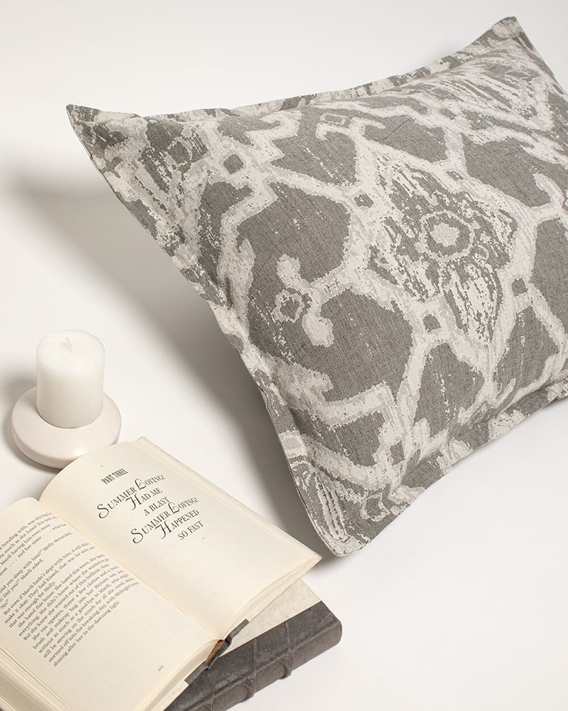 Introduce a touch of global elegance to your bedroom with this gray and white ikat-patterned duvet cover. Featuring a beautifully woven design inspired by traditional ikat motifs, this duvet cover adds a subtle yet artistic charm to any space.