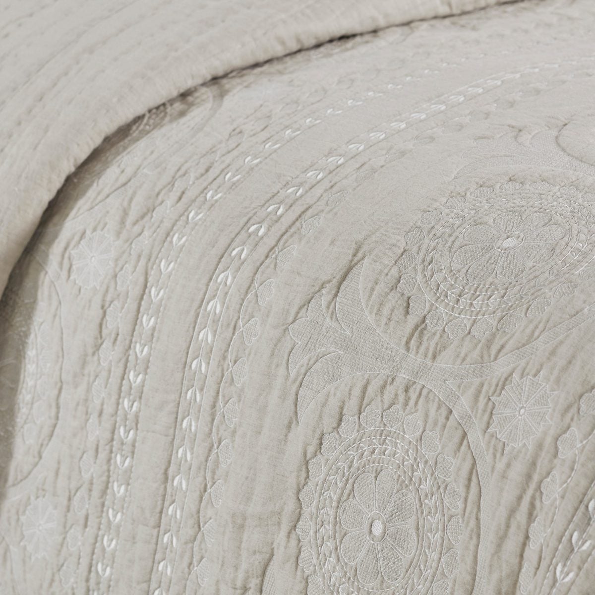 A textural masterpiece, with beautiful embroidery and trupunto quilting.