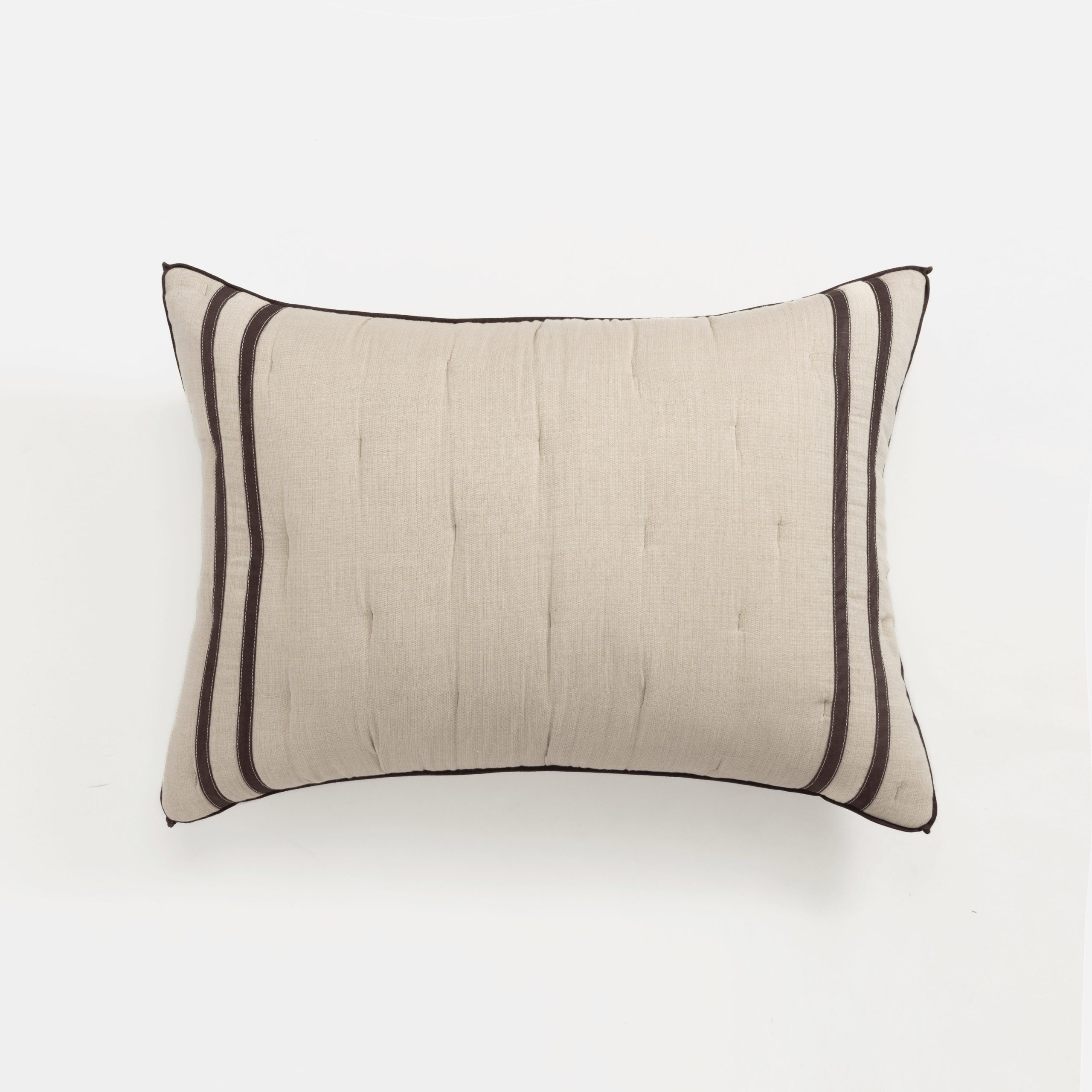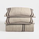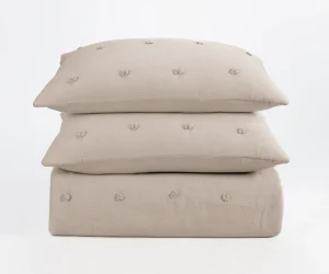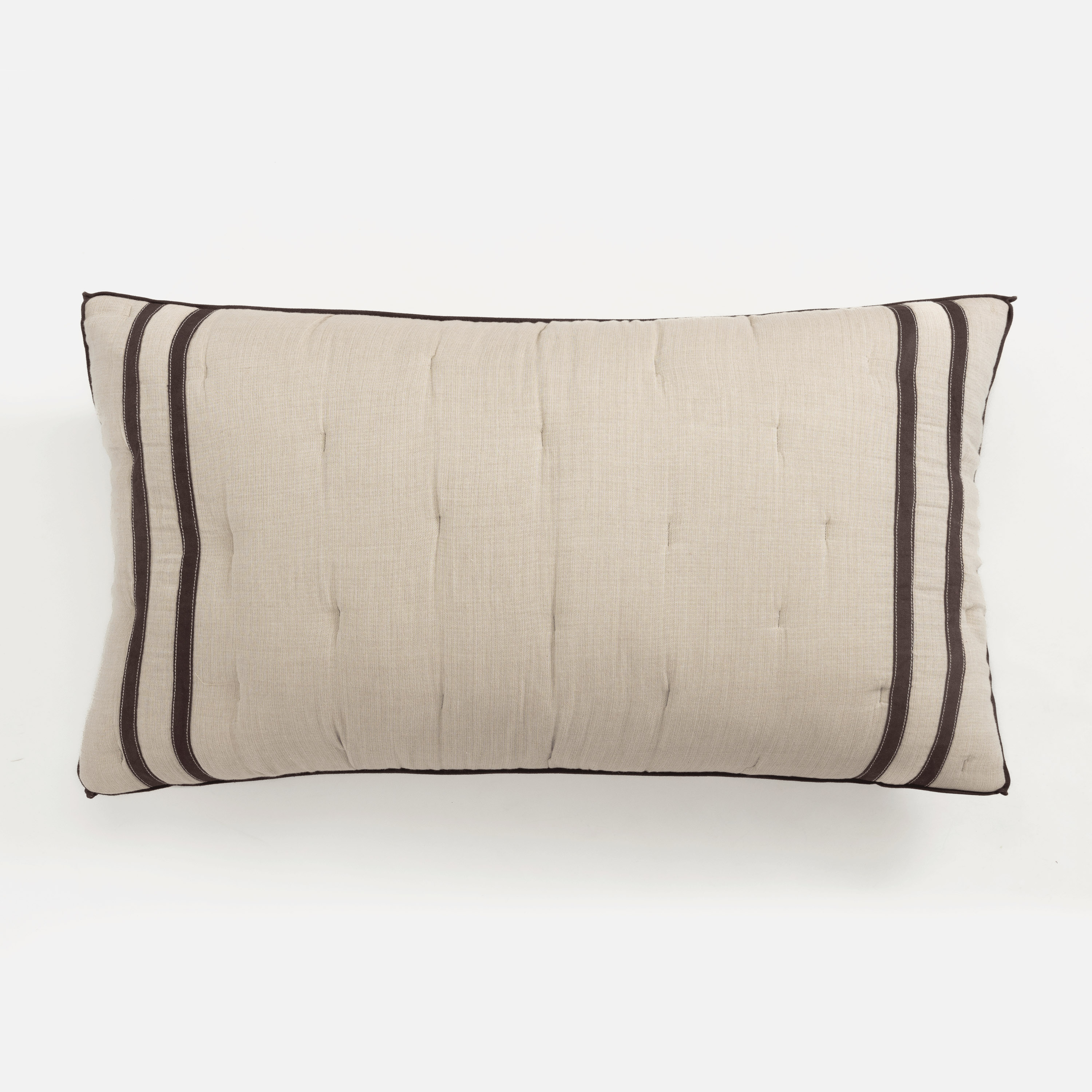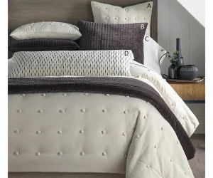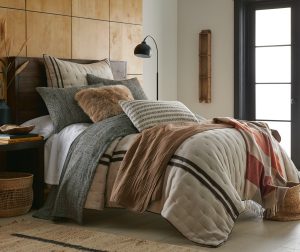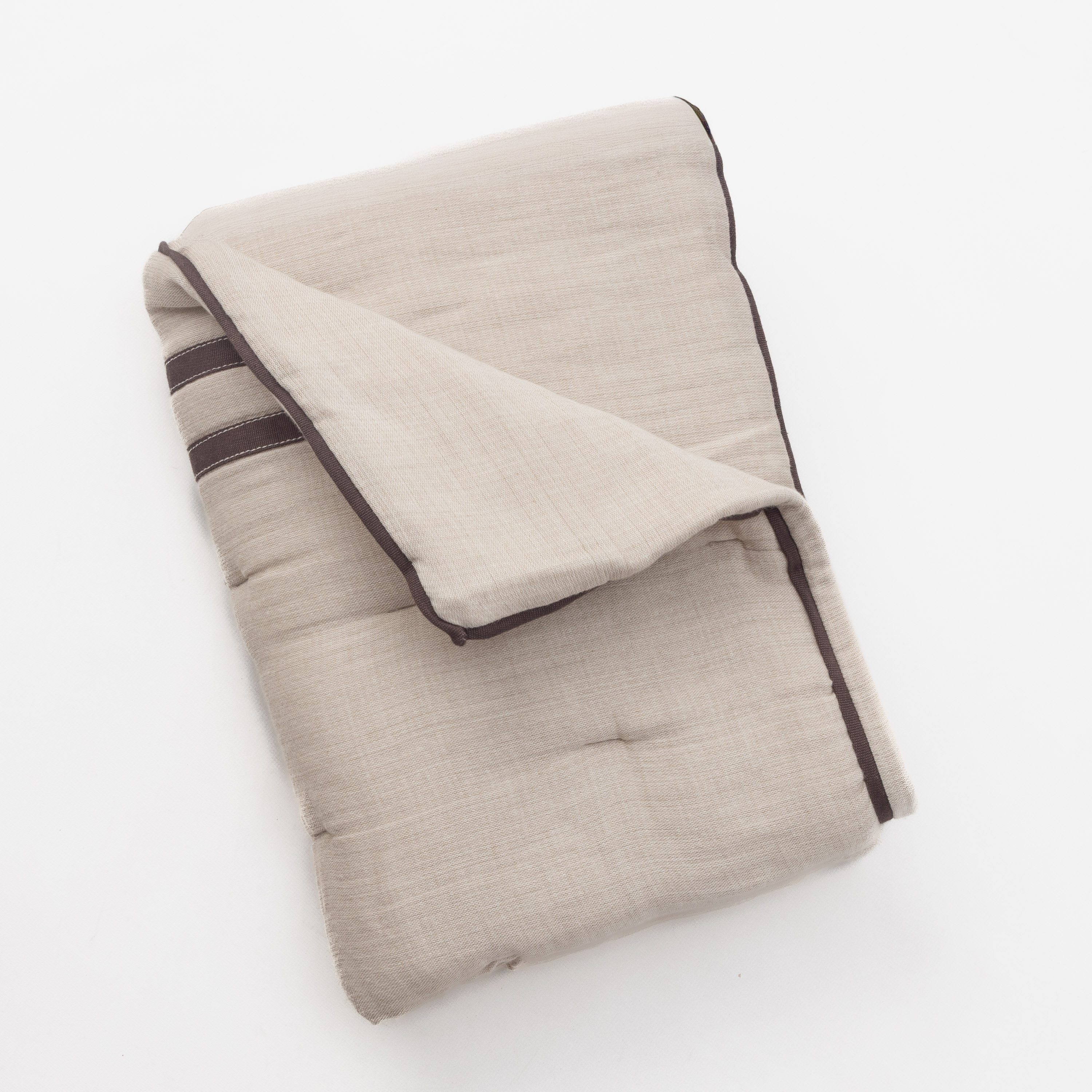 Inspired by athleisure, Merritt is a yarn-dyed showcase of diverse embroidery techniques, richly detailed with running stitches. Its lofty fill and contrasting micro flange enhances the natural cotton texture, resulting in a distinctly luxurious piece.