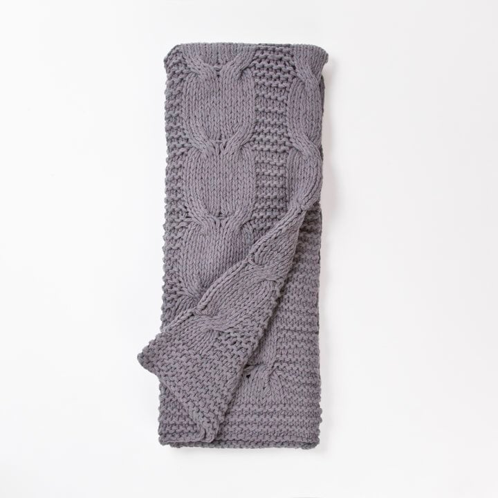 Micah Cable Knit Throw, Steel Blue