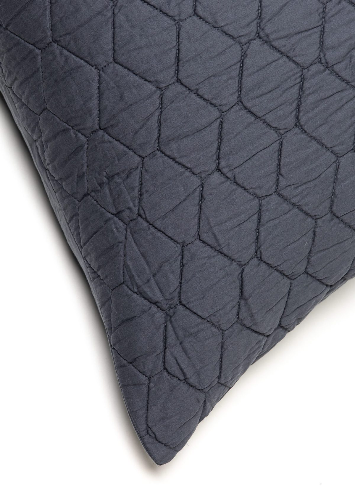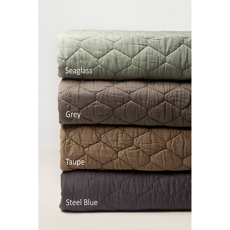 Fine cotton sateen is quilted in a tile inspired hexagon pattern for unique quilt that can transcend styles from Cottage to Mid-Century Modern.