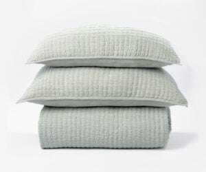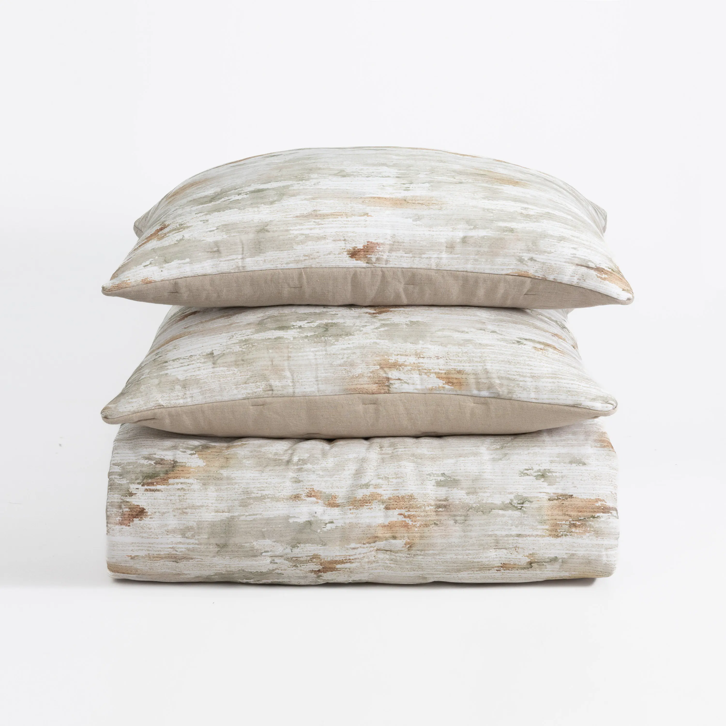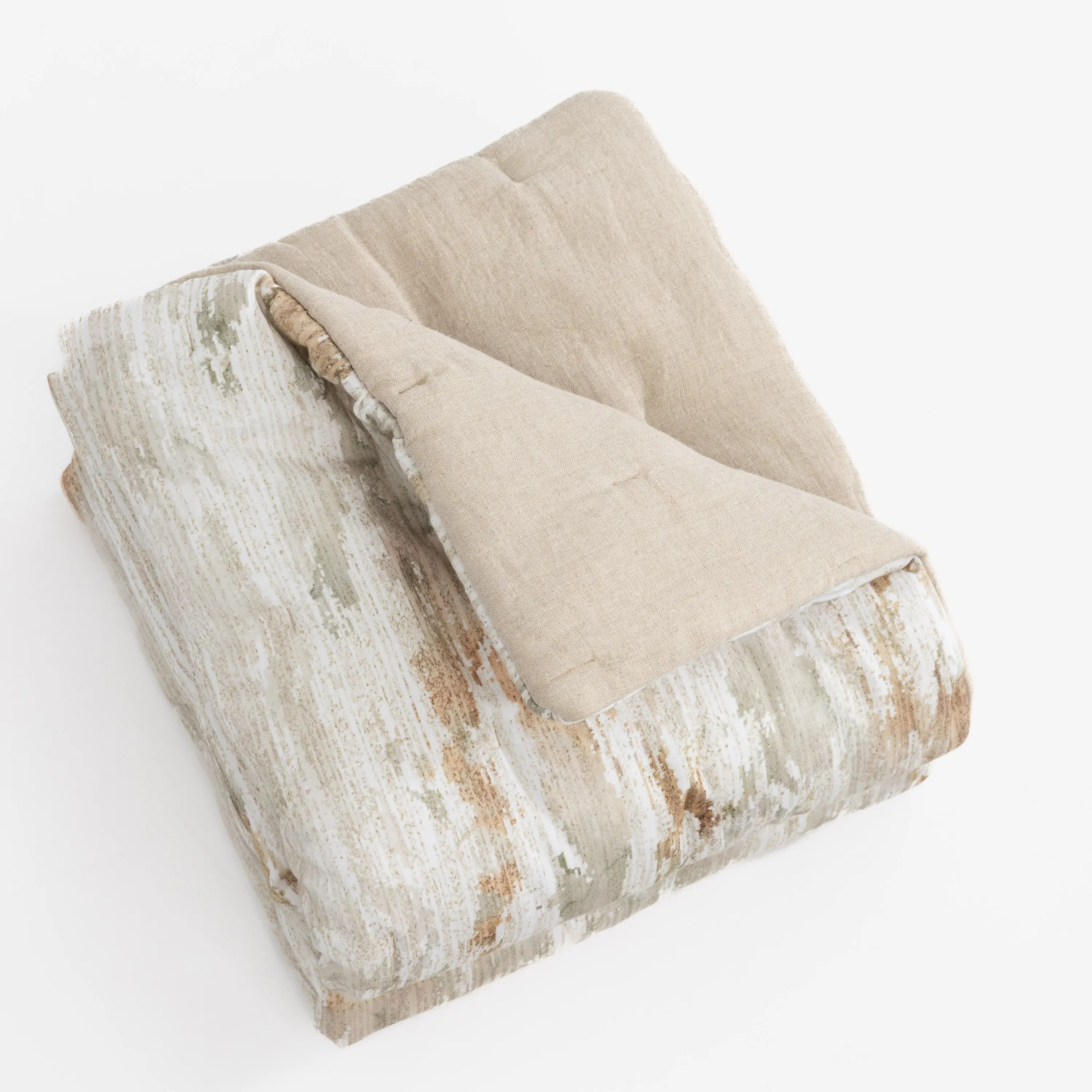 An abstract watercolor design, printed on 400 thread count with a loft fill and backed with fine natural linen allow the Murdock quilt to take on both a modern and casual aesthetic.