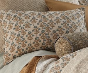 For an ensemble that exudes warmth and calm, keep the overall coloration muted and within close proximity on the color wheel. The Noah duvet cover and Marius quilt share the same indigo herringbone weave fabric and are easy companions. Add a Mathew accent pillow for a change in scale and finish with the Damara sheet set in natural to keep this setting serene.