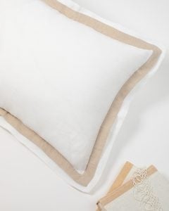The sleek simplicity of bold lines creates a timeless look in any bedroom. A hanging flange that falls freely and adds to the relaxed drape of our linen Orfeo Duvet. Sewn only on one side, this flange completes a weightless feeling. Fine linen finished with a contrasting mitered double flange lend this collection a subtle sophistication.
