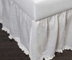 Paz Crochet Linen Bed Skirt, White, King