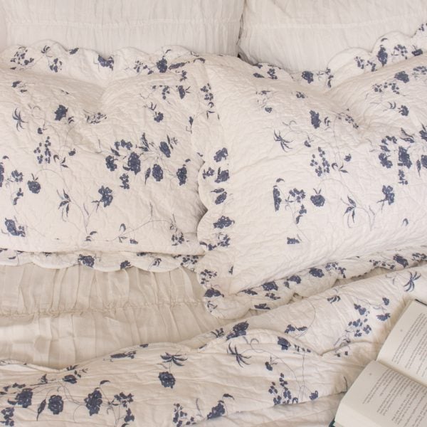 A traditional patchwork quilt is reimagined in vintage-inspired floral fabrics. Super soft hand quilted and machine washable.