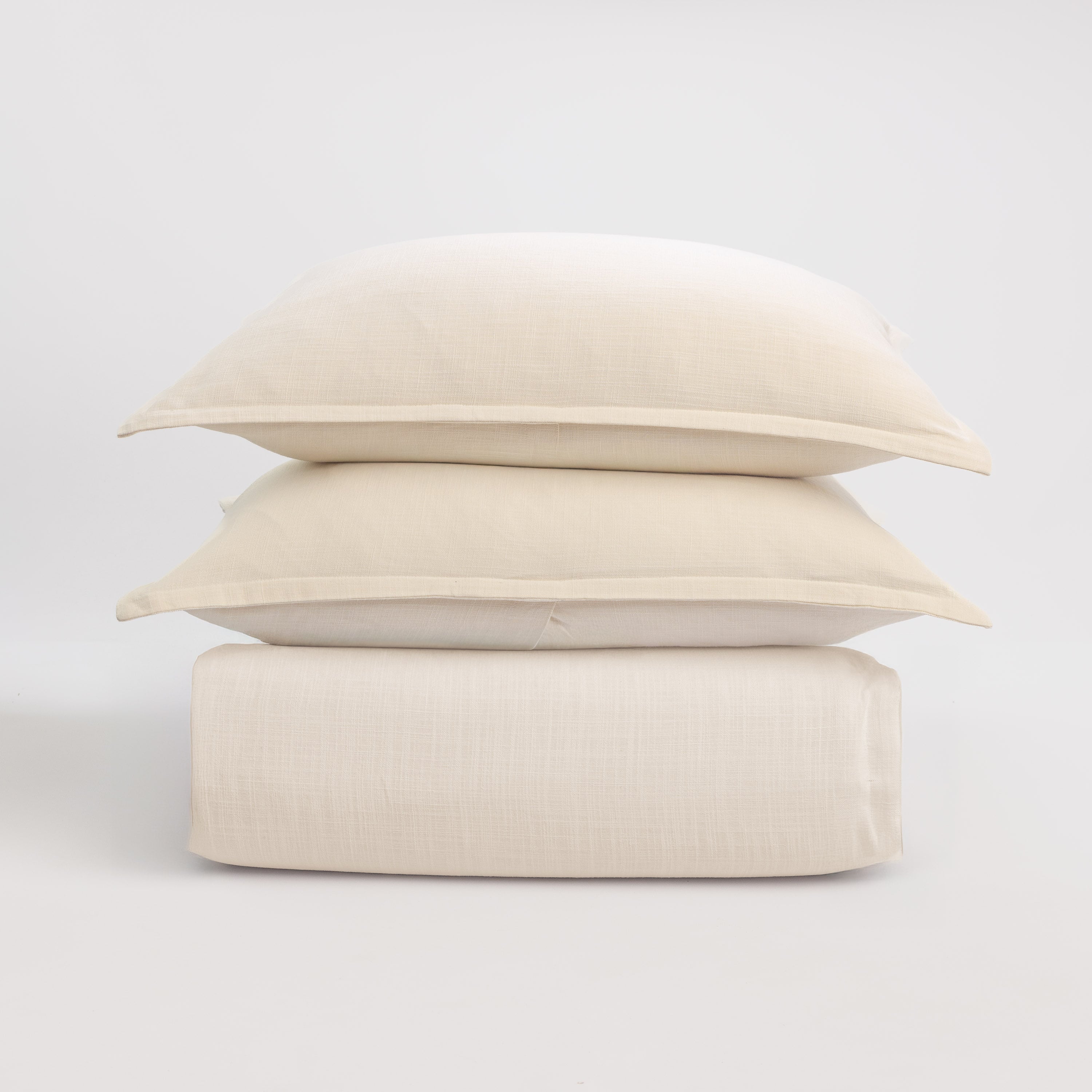 The Pure duvet cover is constructed of slubby cotton in the warp and weft for a rich linen look. Finished with a 1” straight flange and hidden button closure.