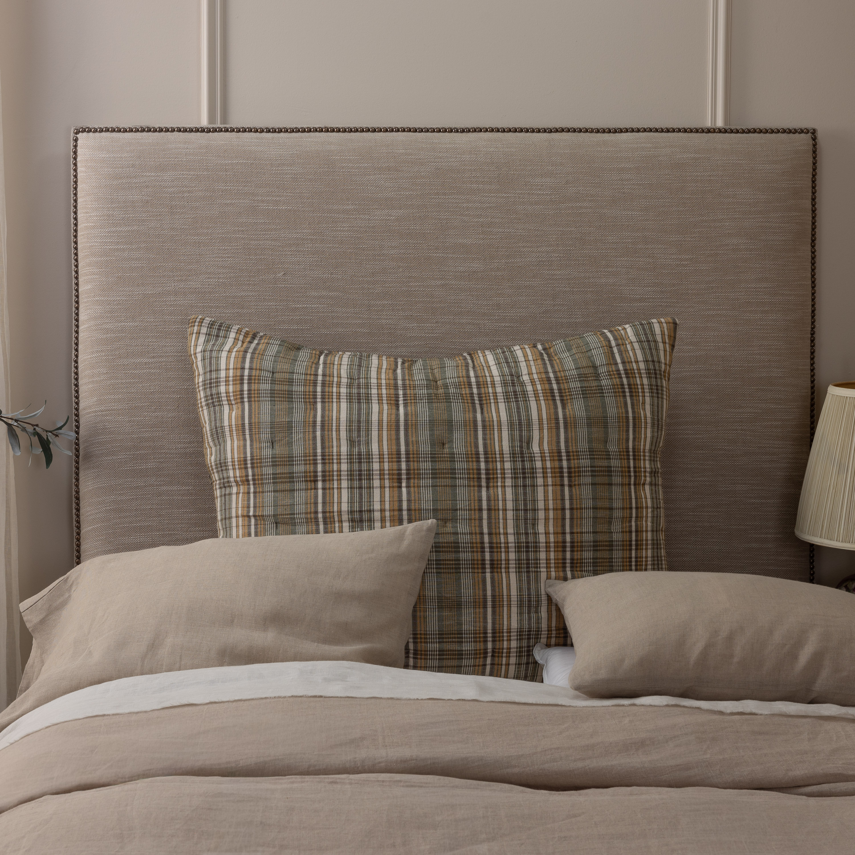 Reynolds is a yarn-dyed plaid quilt that blends classic pattern with inviting texture, woven in 100% cotton with soft slubs that lend a handcrafted, heirloom feel. Muted tones of laurel green, ochre, ivory, and warm tobacco brown are thoughtfully balanced, creating a palette that feels both grounded and refined. The lofty fill adds comfort, making it as cozy as it is tailored. Perfect for layering, this piece brings a touch of rustic sophistication and visual rhythm to the bed.