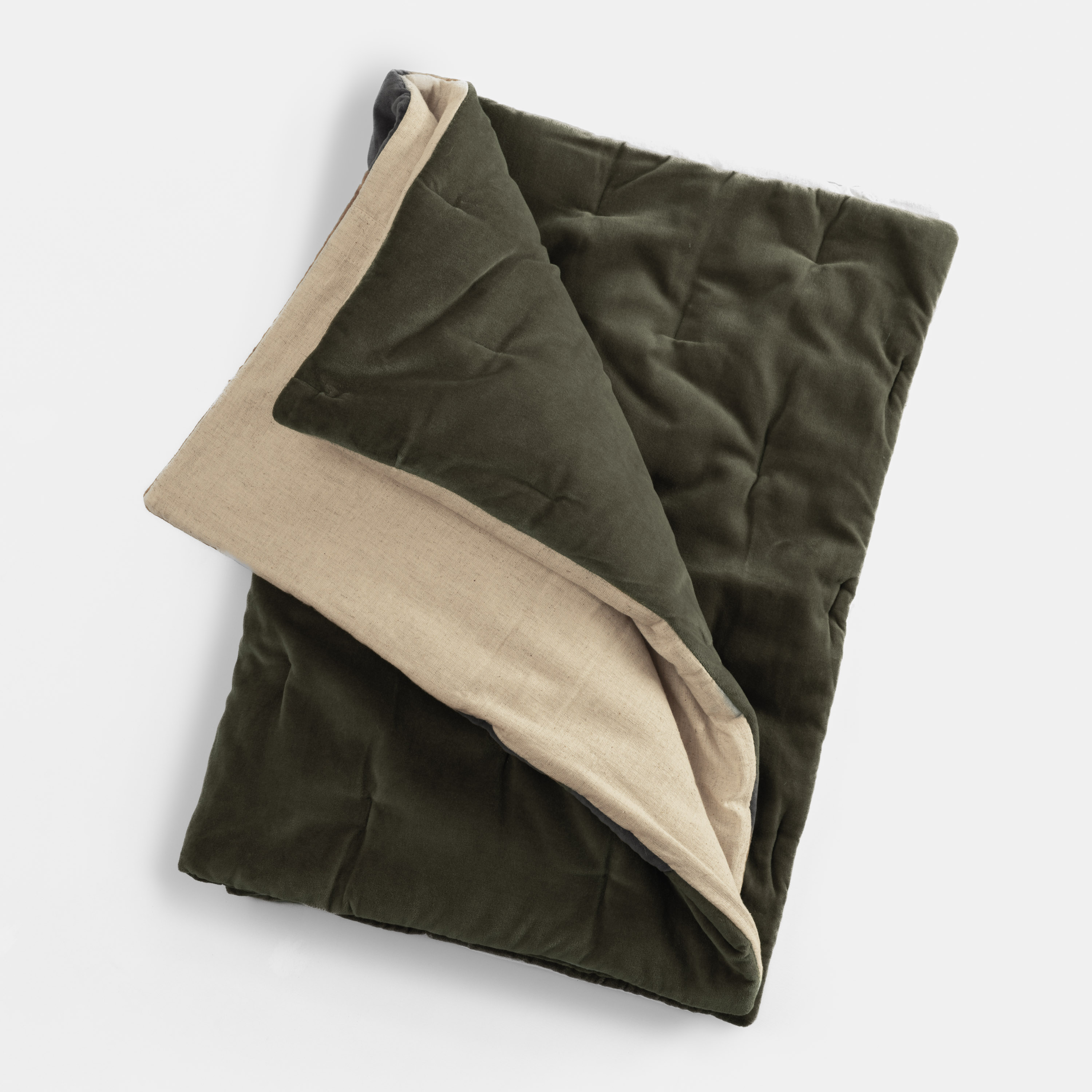 The Roan quilt easily adds understated luxury as a primary layer, or as accent. The lush cotton velvet reverses to a raw cotton and flax flecked back. The lofty fill is simply tacked for a restrained finish that can fit in a wide variety of styles. The Roan quilt is available in: