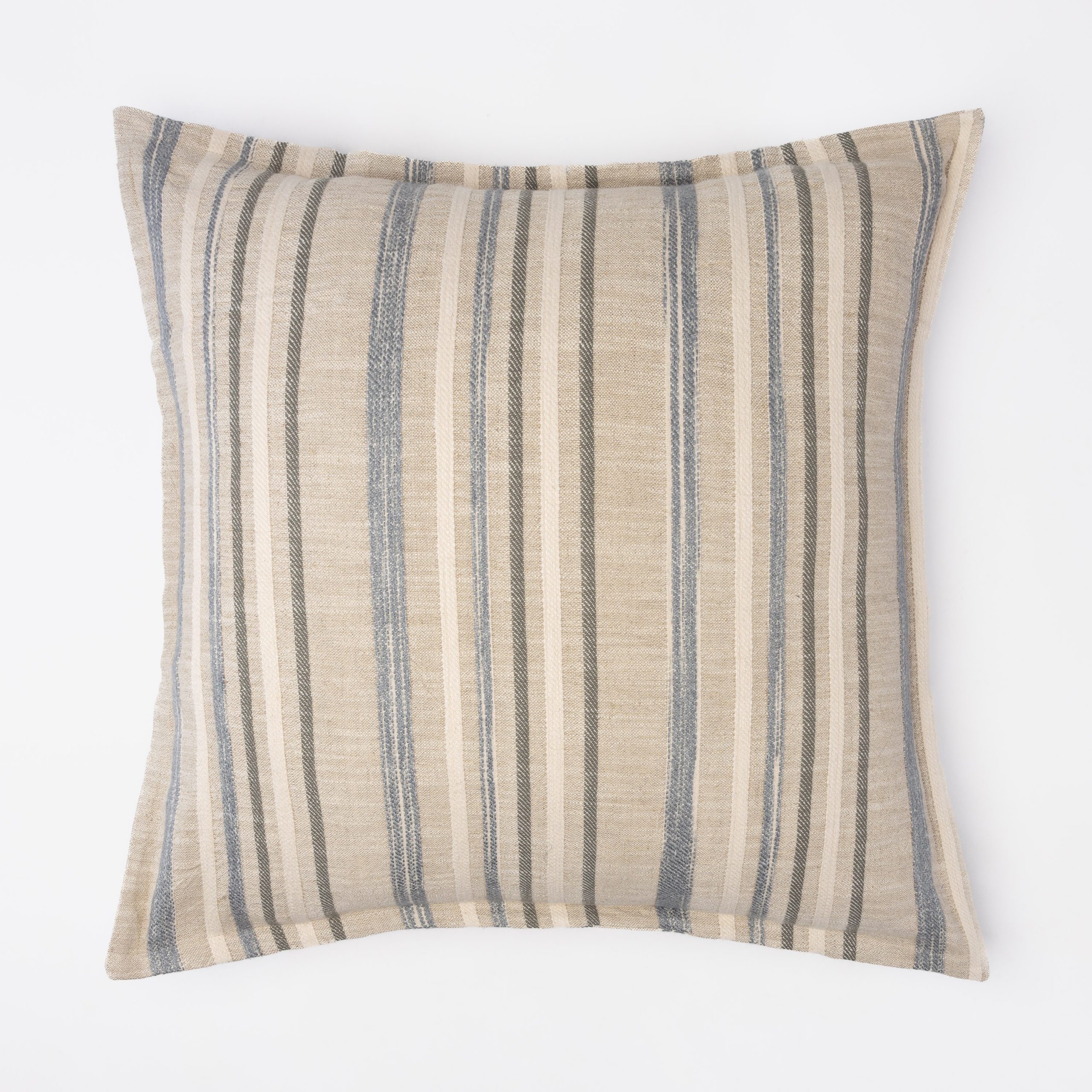 Linen & Cotton blend in a variety of weaving styles to create this textural multicolor stripe. Subtle enough to be used as a neutral or pull out the Kale and Limestone accents stripes.