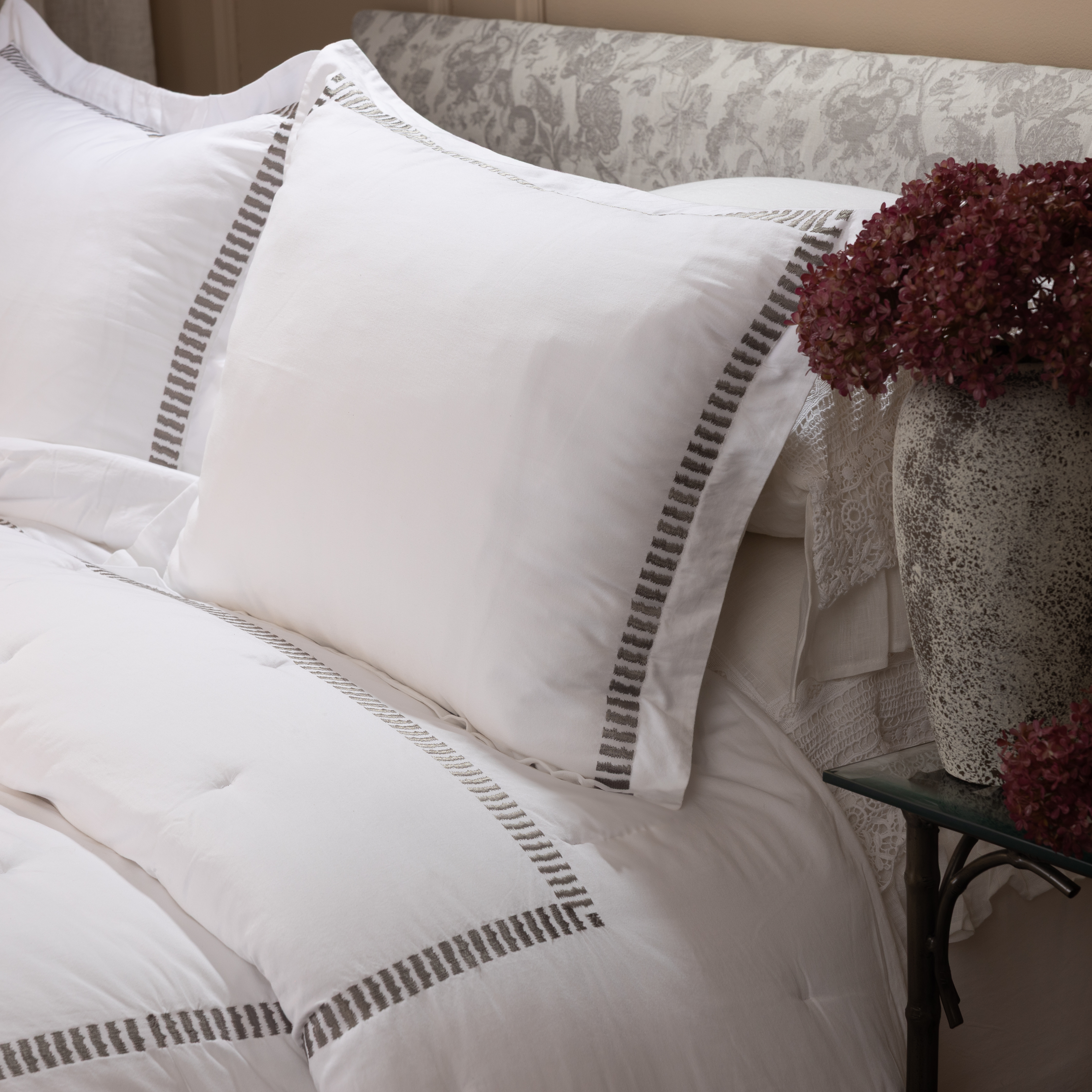 This reversible comforter is constructed of 100% Cotton Sateen 400TC front and back, with a lofty fill to add a layer of coziness and sophistication to nearly any ensemble.