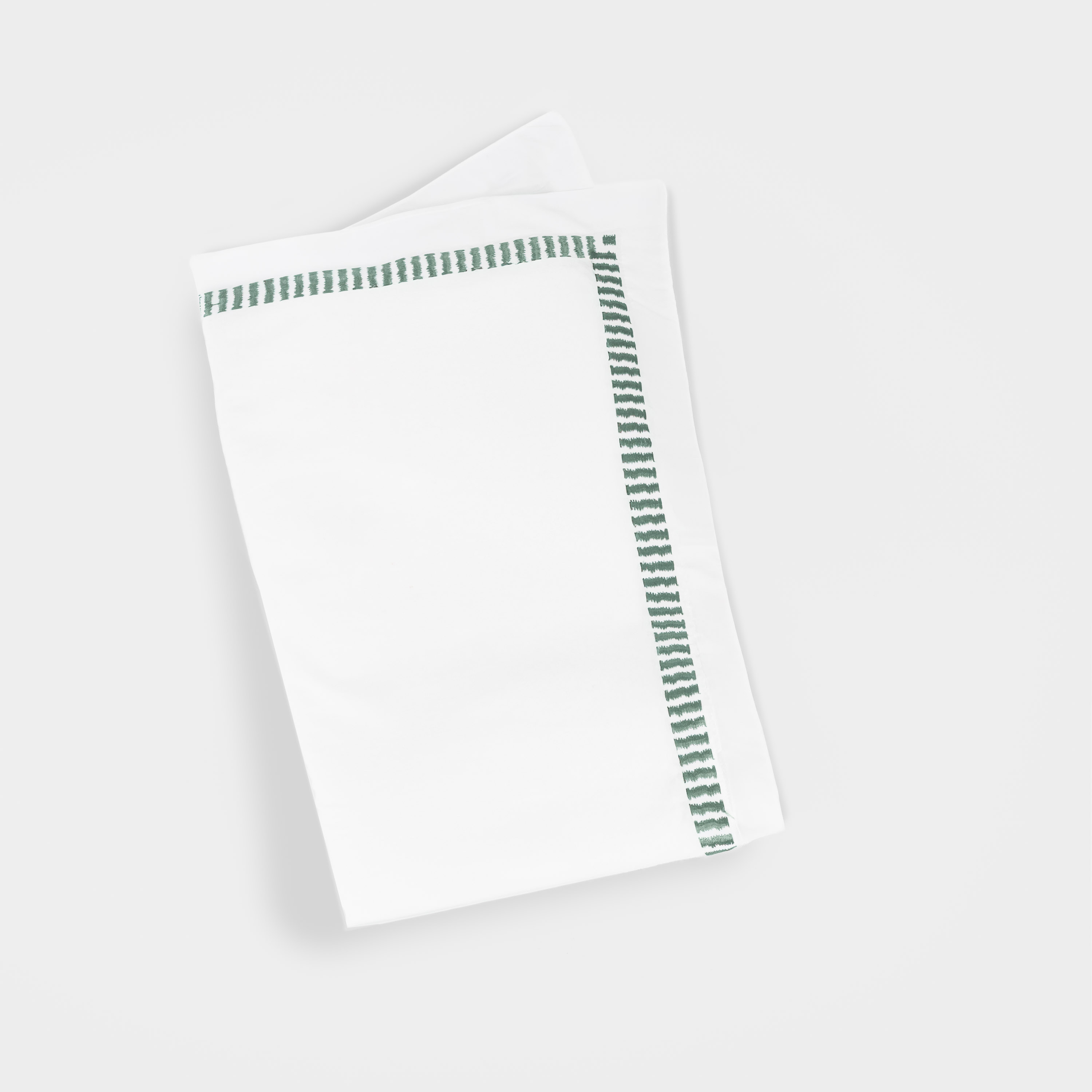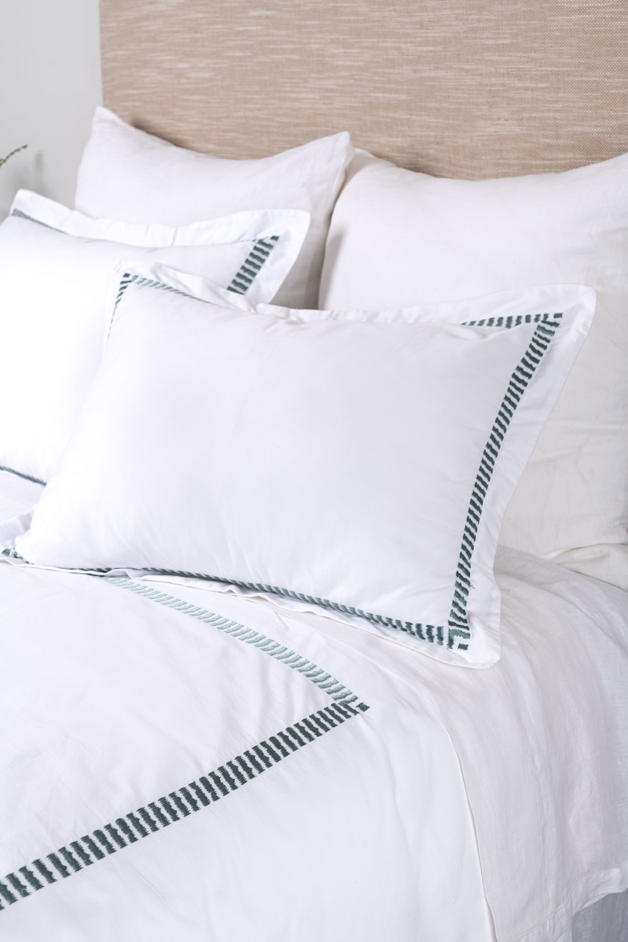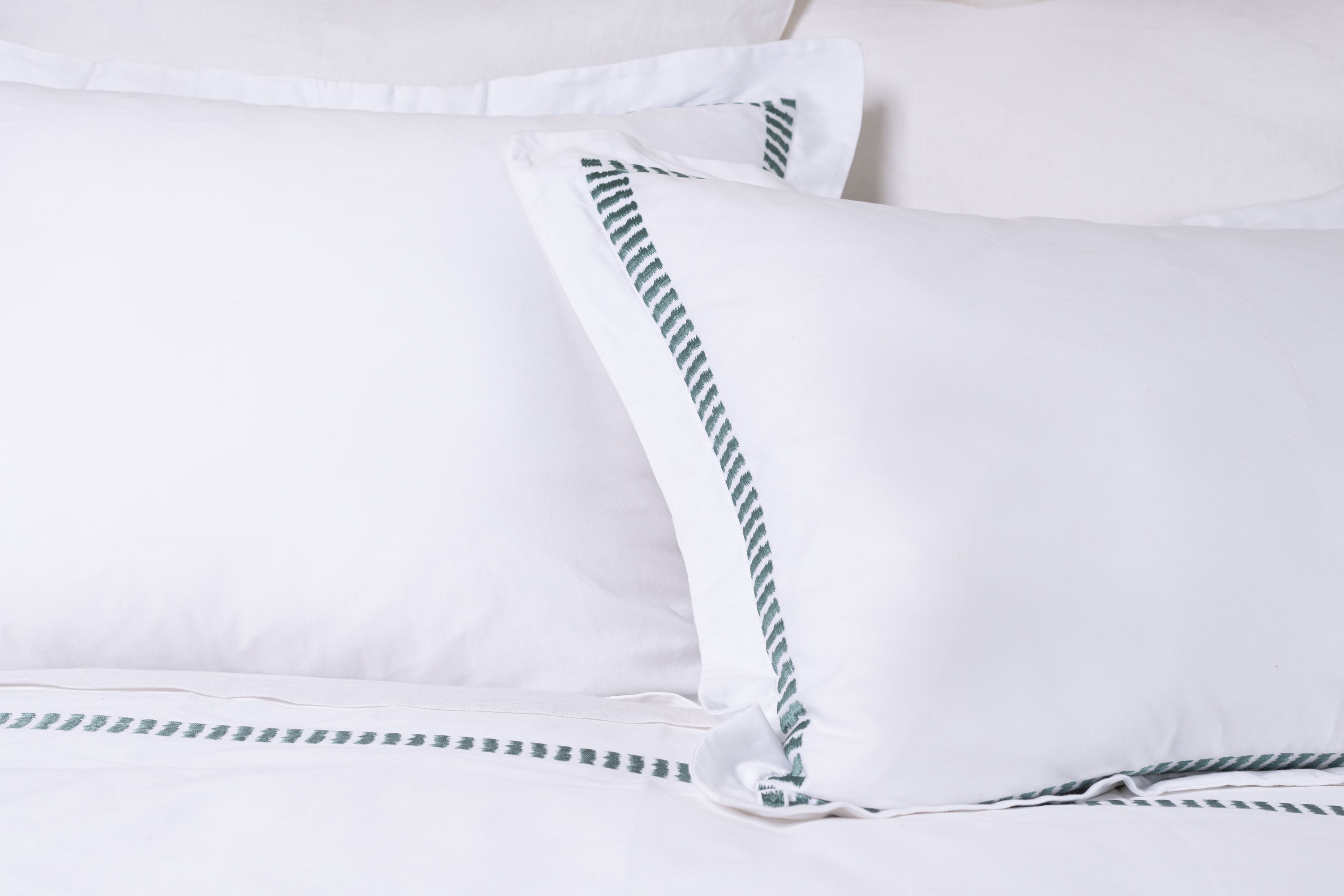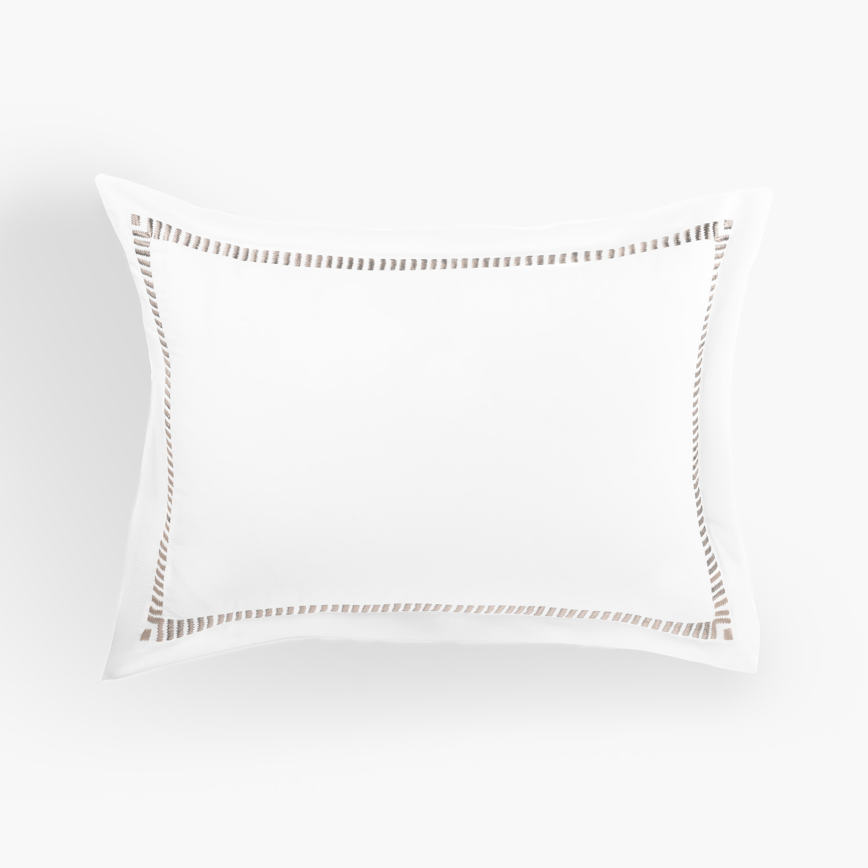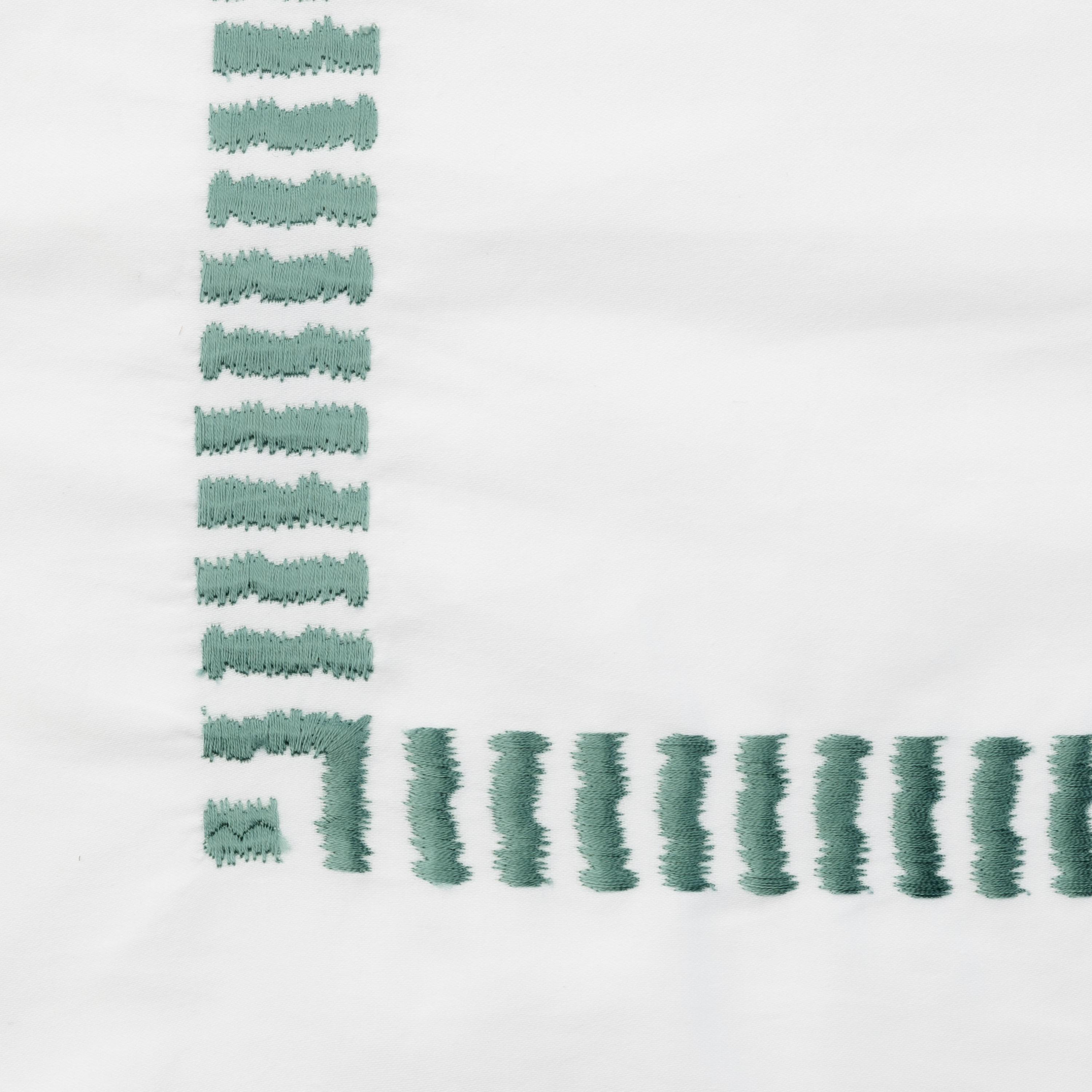Simply luxurious, this collection is constructed of fine 400 thread count cotton sateen and adorned with embroidered with rhythmic bars embroidery. The sateen weave provides an easy drape and supple hand, while maintaining a crisp appearance. Embroidery in a soft contrast coloration lends this collection to a wide variety of styles and sensibilities. This transitional motif is stylistically versatile.