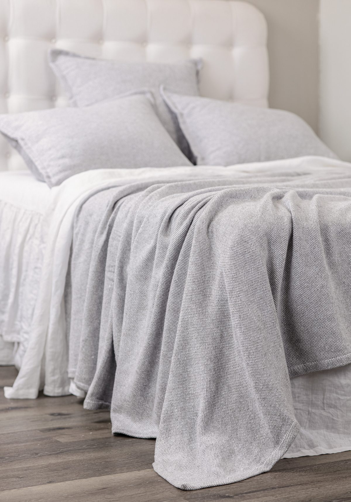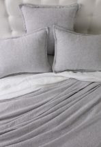 Using the Silas coverlet tossed across the foot of a crisp bed provides a sophisticated softness. Paired here with Amalfi and Victoria, respectively a sleek 400 thread count embroidered duvet and quilt.