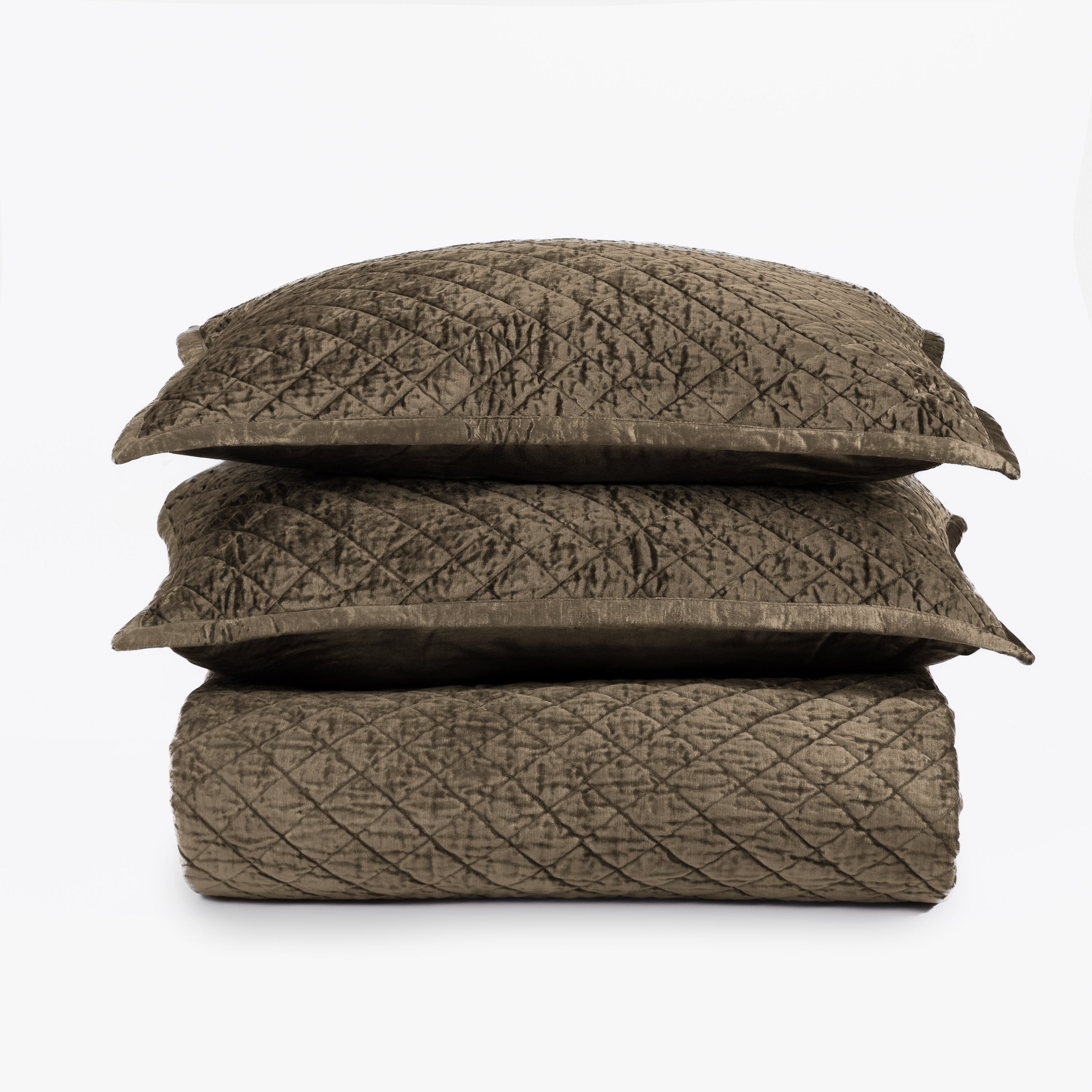 Simona is constructed of a rich rayon velvet, quilted in a classic diamond pattern and bound with self-piping for a formal and lustrous aesthetic.