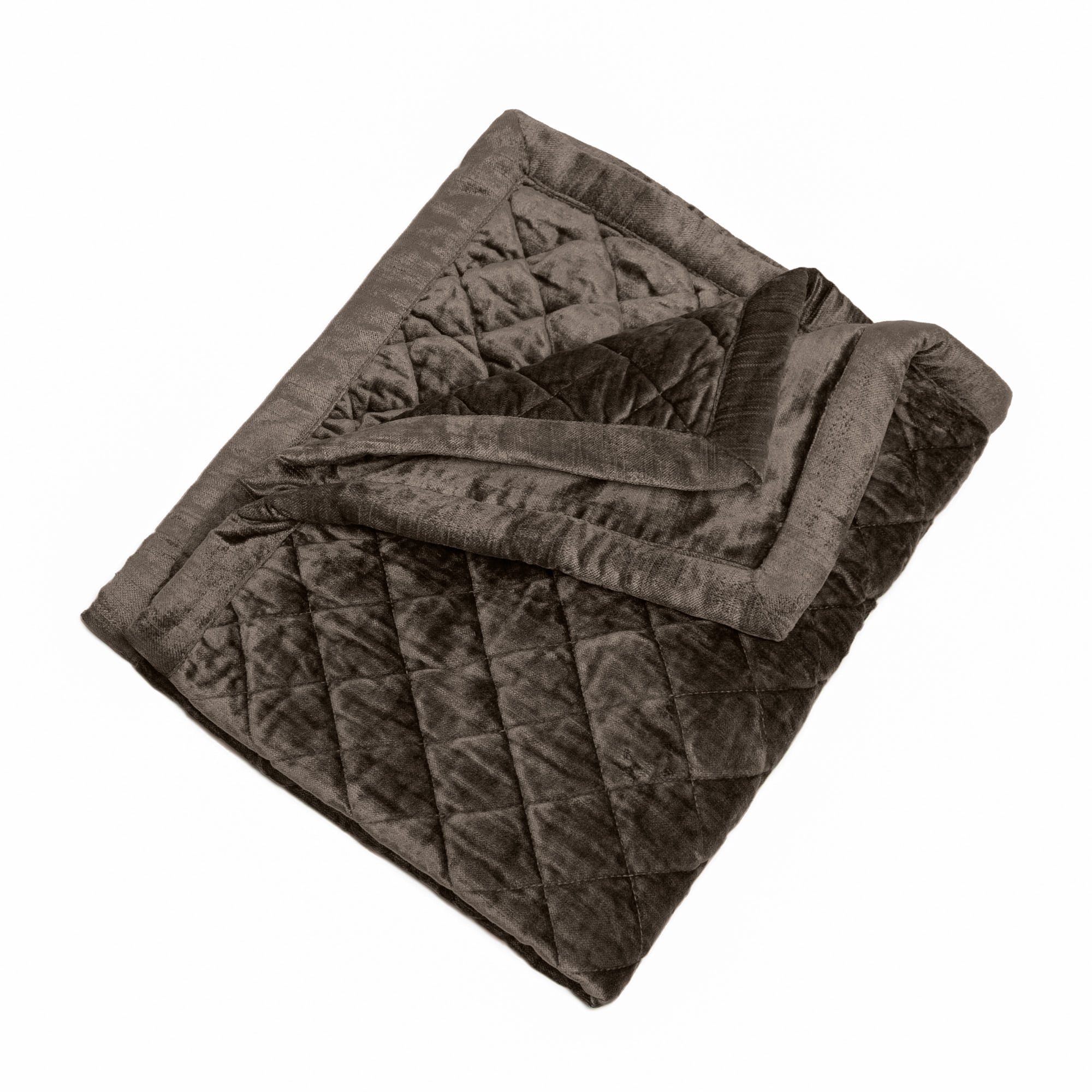 Simona is constructed of a rich rayon velvet, quilted in a classic diamond pattern and bound with self-piping for a formal and lustrous aesthetic.