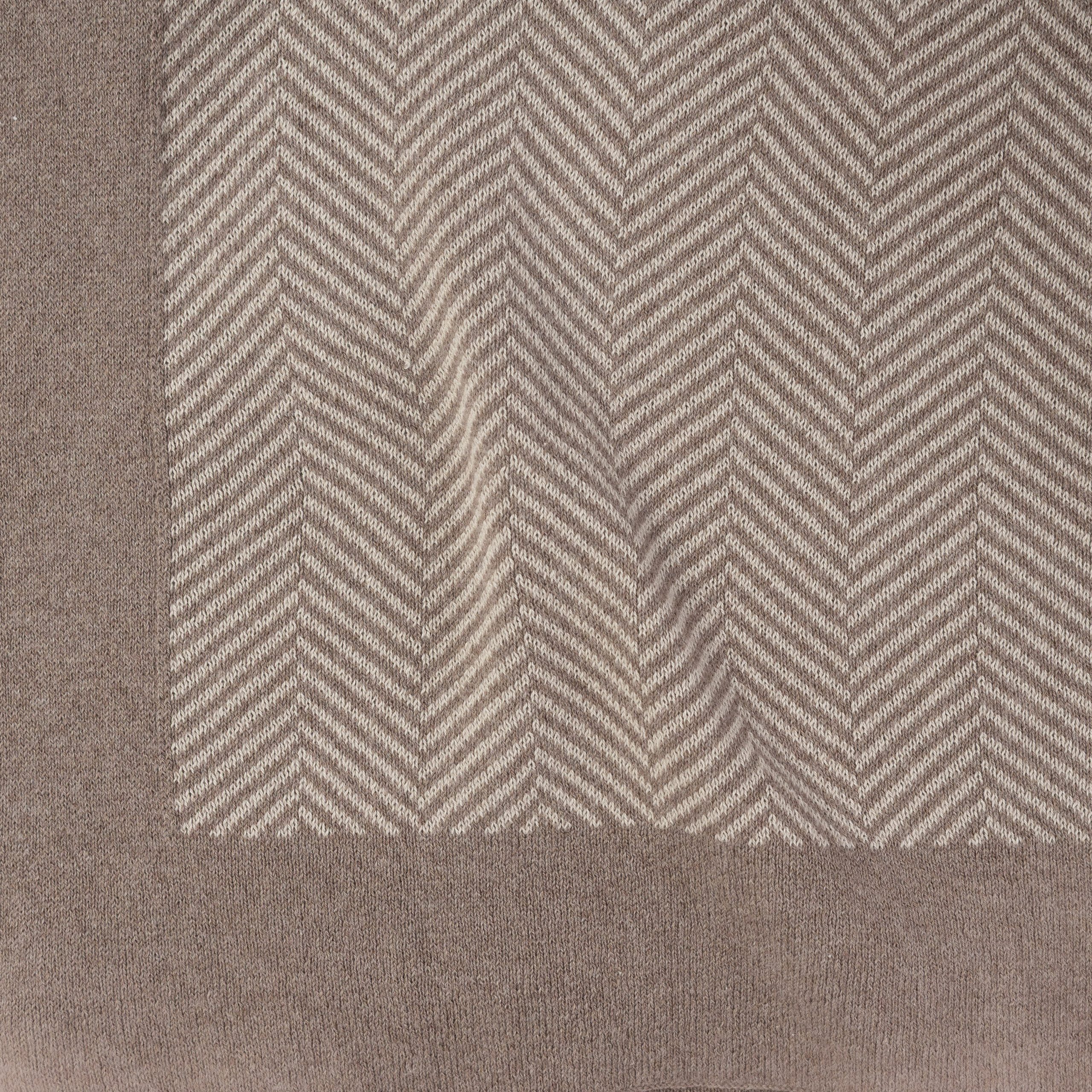 Sweeney is a fine cotton knit in a herringbone pattern, finished with a solid-color border. This generous throw fits neatly across a king-size bed. Its refined fiber and finish give it a timeless look with a subtly modern edge.Â