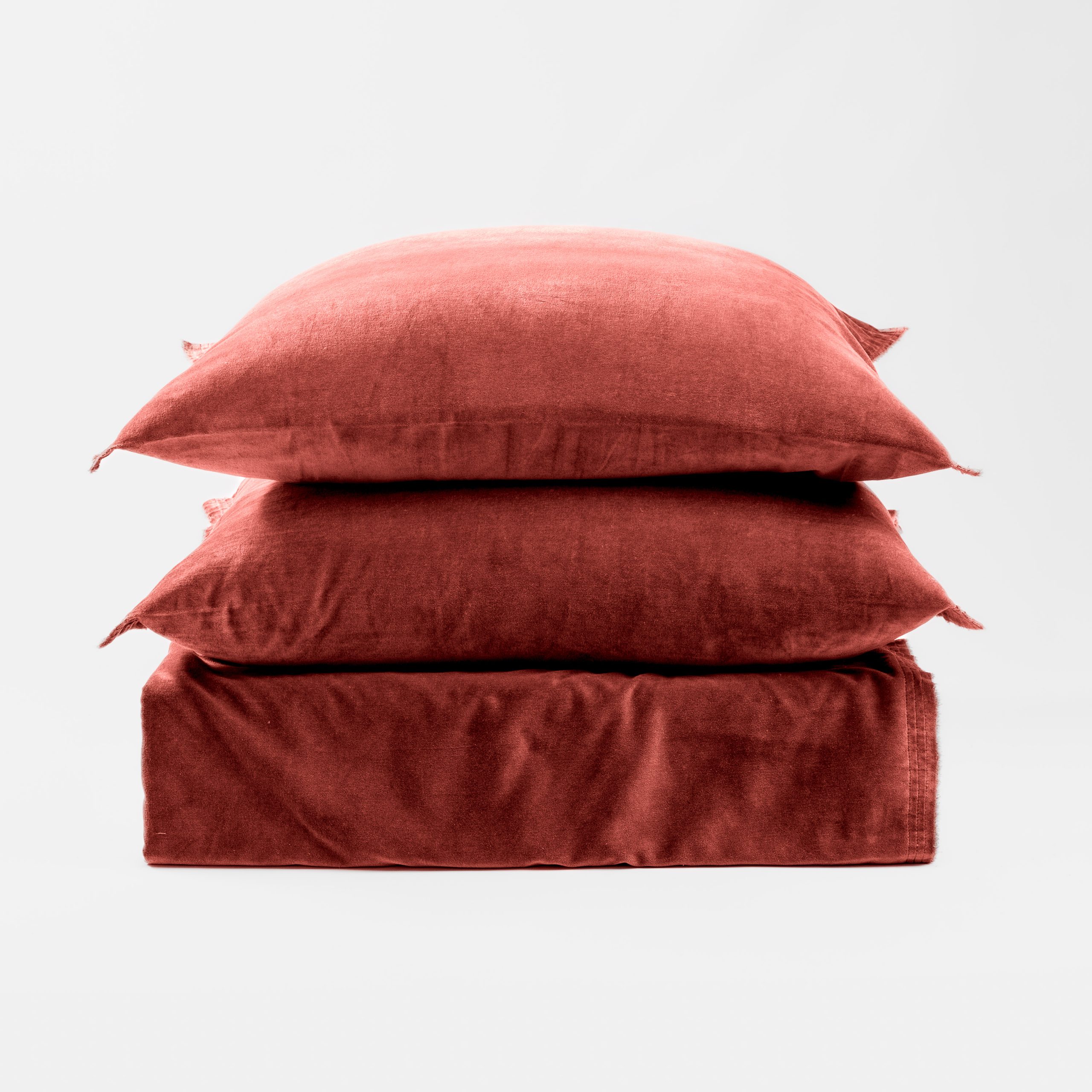 The beauty is in the details: constructed envelope style, the fabric for the duvet and shams is simply folded in half for a soft edge along the top, then double needle stitched down both sides, with exposed frayed edges. The Tahoma duvet cover is available in:
