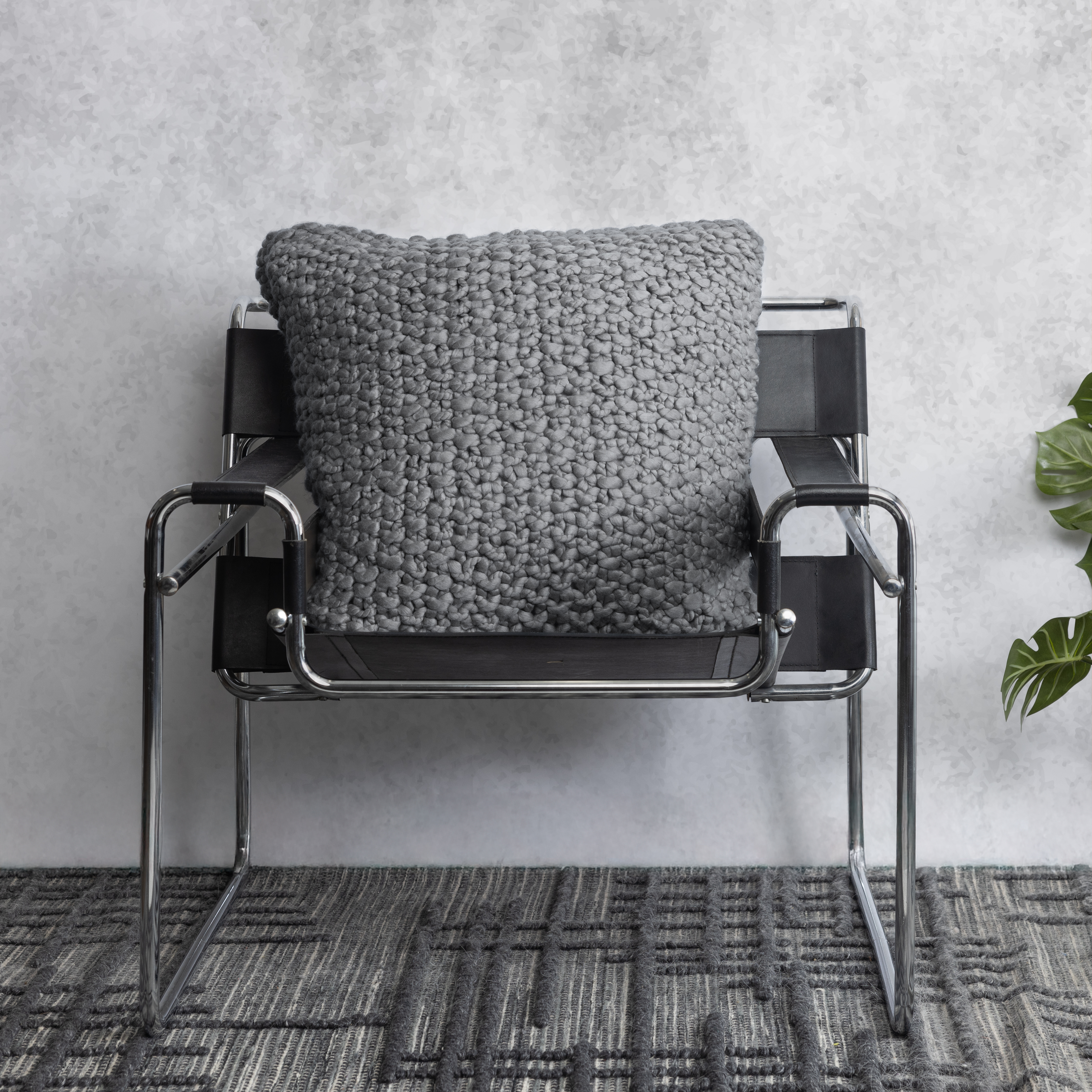 Knit of an irregular, thick and thin yarn gives this throw its unique texture and soft hand.