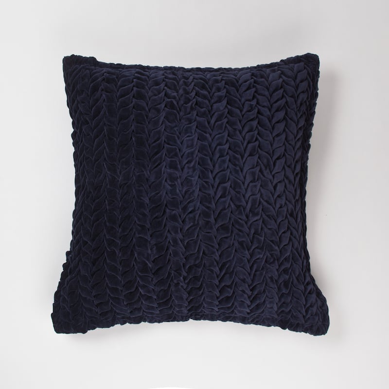 Yards of rich cotton velvet are hand gathered and tacked into a beautiful basket weave pattern for a texture that is otherworldly.