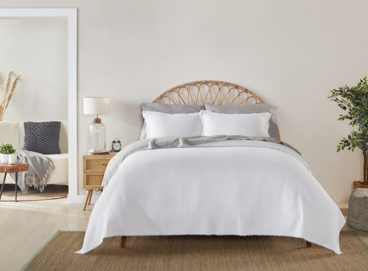 The Tipton Matelasse provides incredibly soft texture with it’s waffle weave and frayed edges.