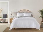 The structured quilting style of Catalina takes on a graphic edge in Asphalt. Paired in stark contrast to Tipton in White, with its raw edged flange give this setting an industrial chic effect. Adding Morse Coverlet and XL Bolster in natural adds a graphic note to the pair.