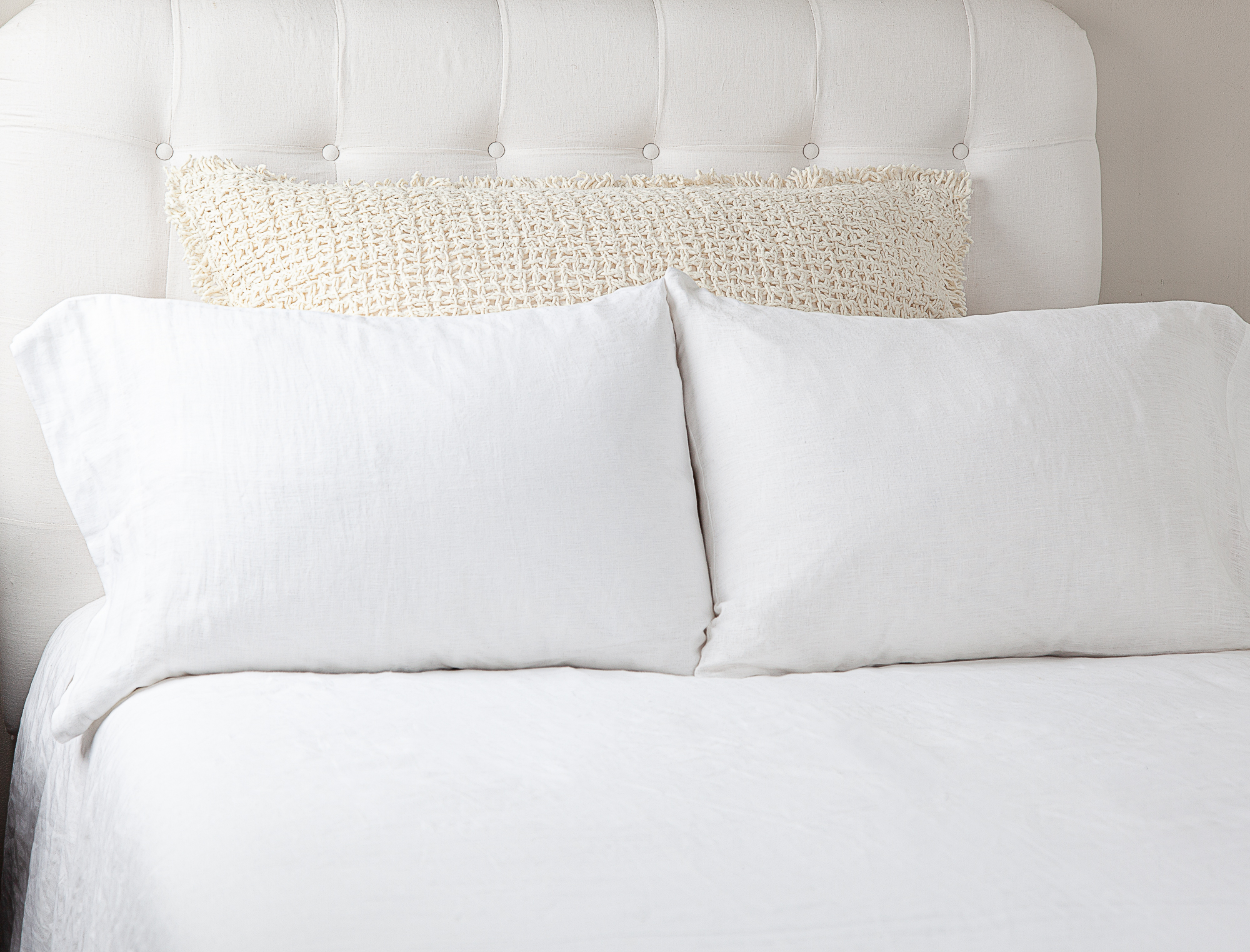 Trawick is handloomed of raw, linen in an open basket weave style with raw edges. The skirt and shams are lined with matching cotton, and shams are slightly oversized and left open on one end, for a casual style. Depending on color selection and surrounding pieces this collection can be used in styles ranging from rugged to regal.