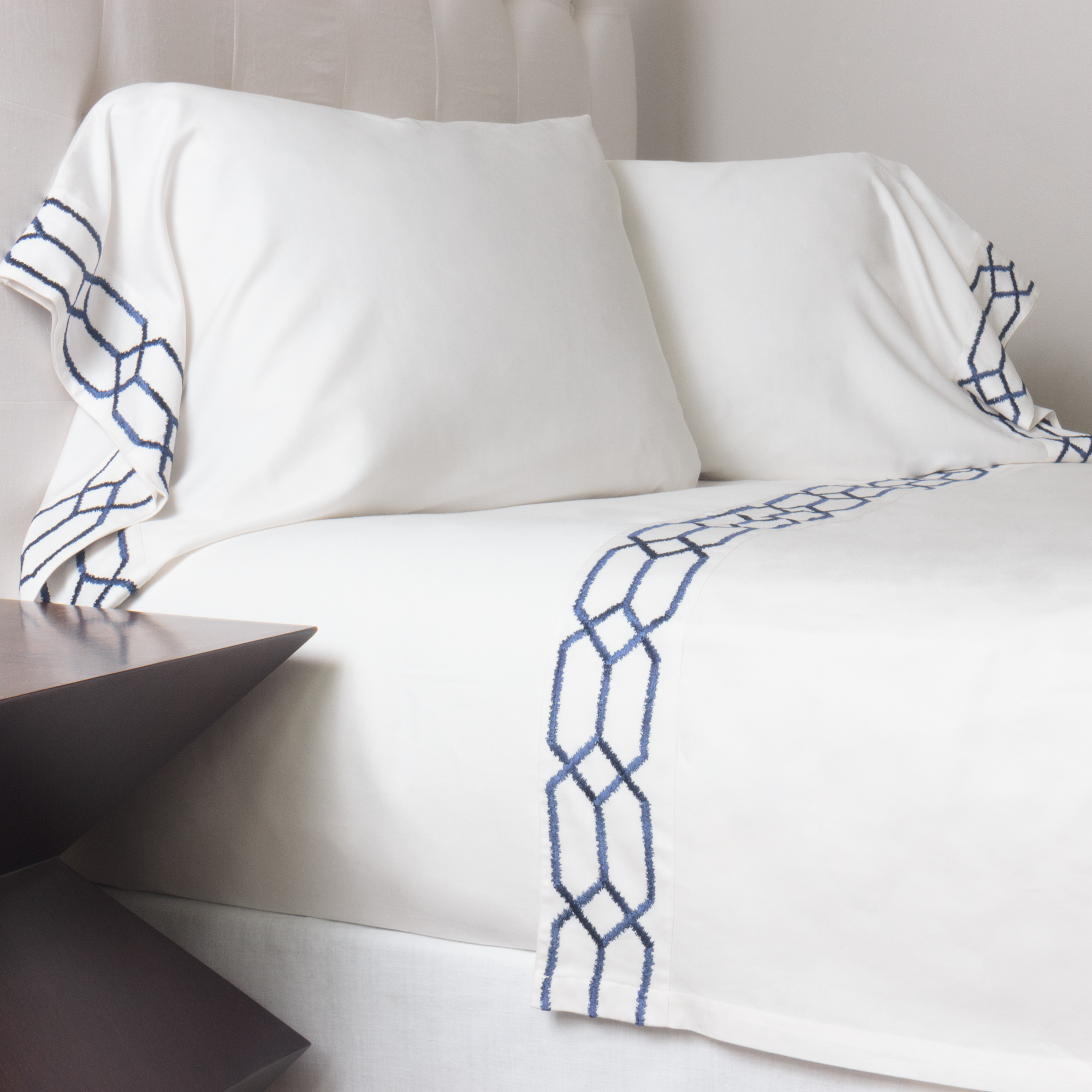 Tucker Modal Sheet Set, Ivory-Indigo (Retiring Soon***)