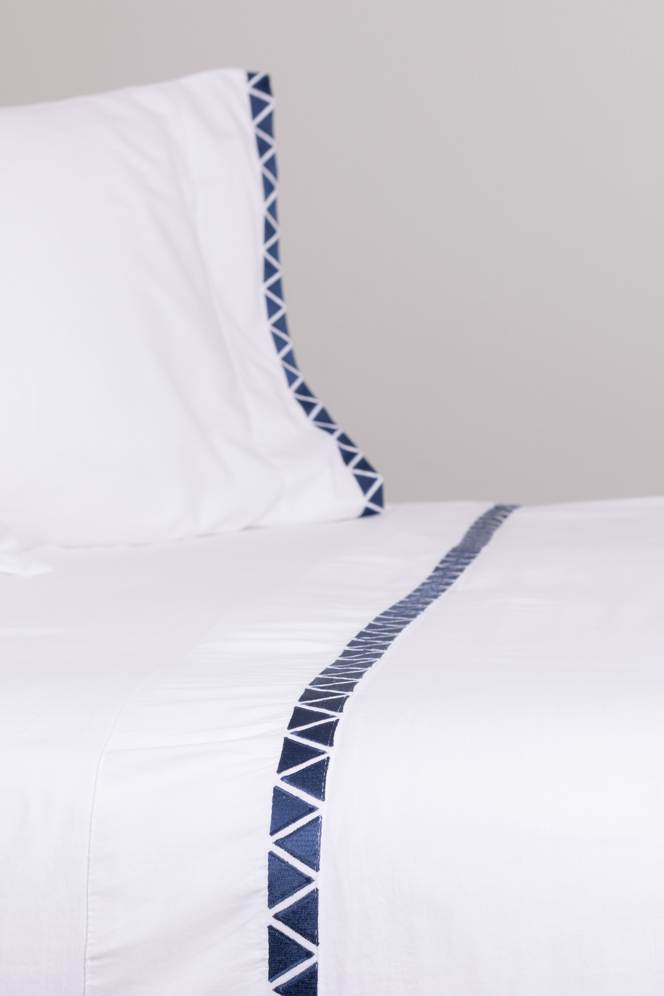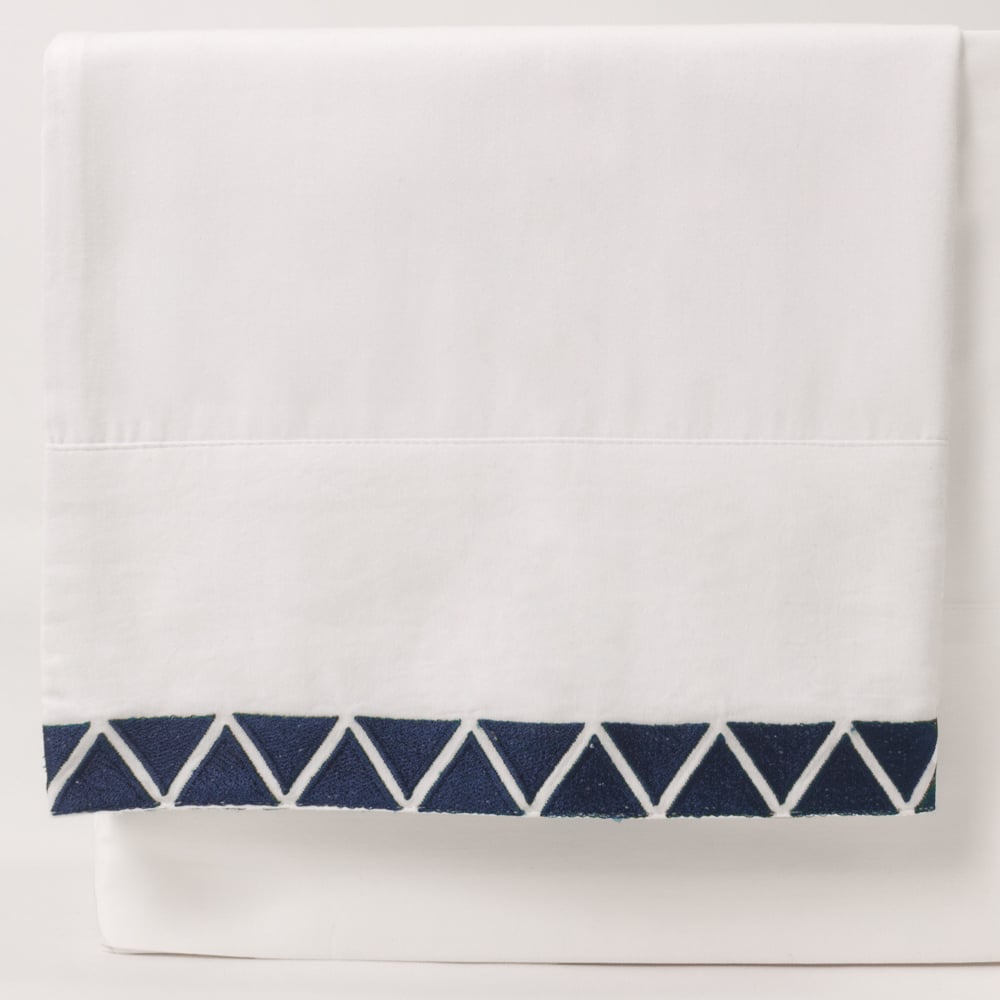 Sleek, 400 thread count cotton sateen sheeting finished with an elegant hem stitch and off-set facing triangles, in bold hues of Indigo, Kale and Peacock for a chic style. Also available as Duvet Cover.