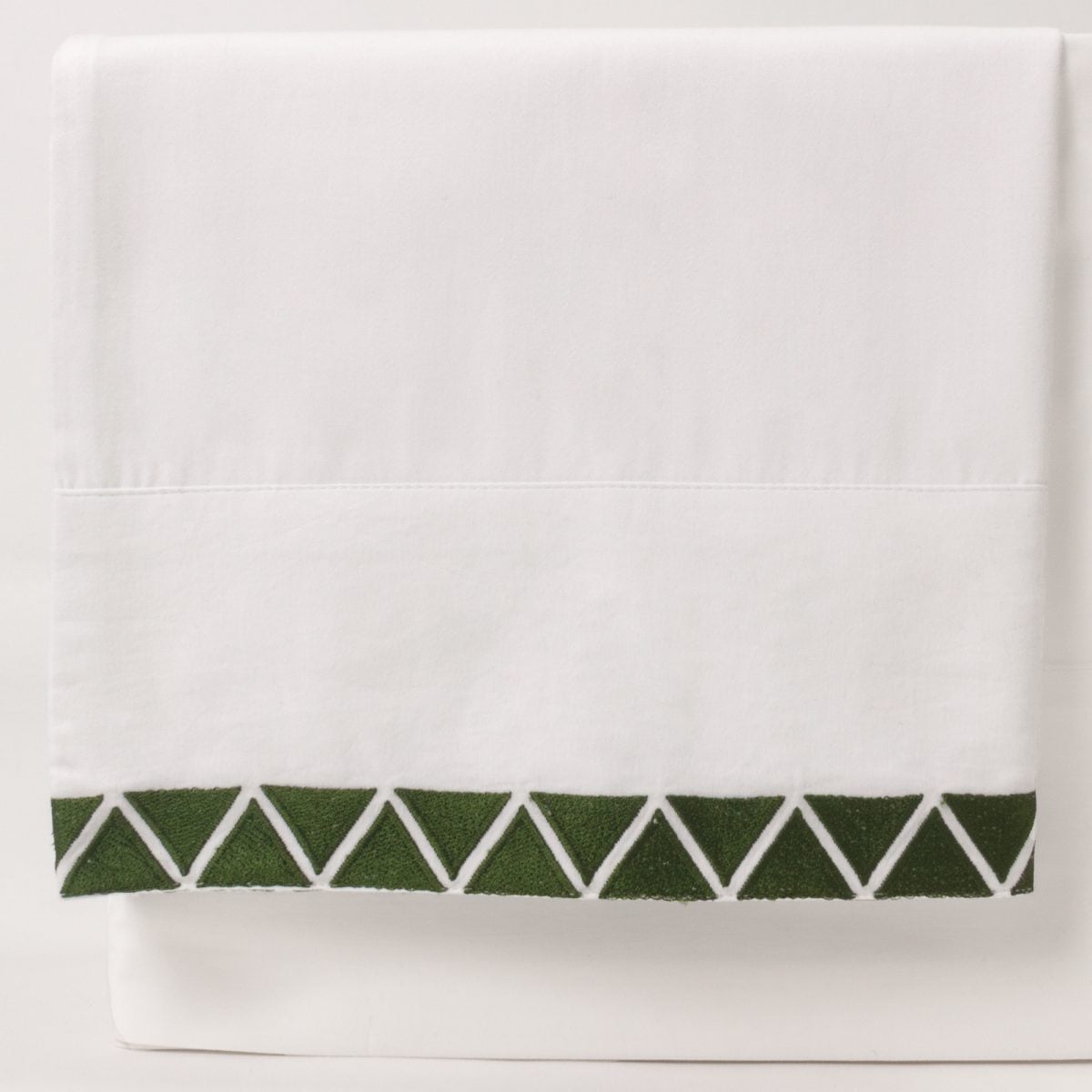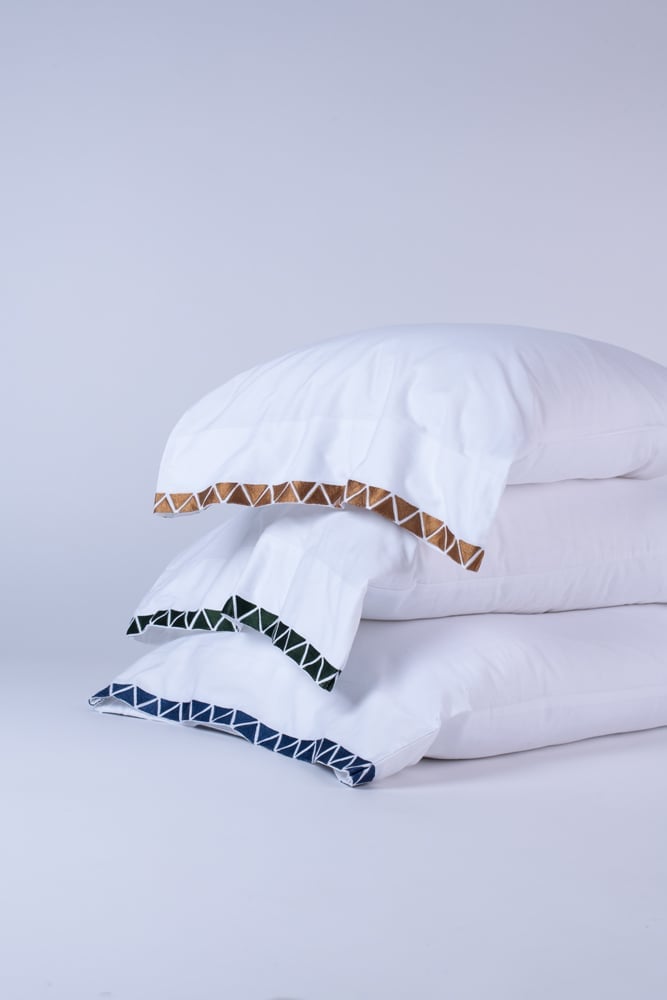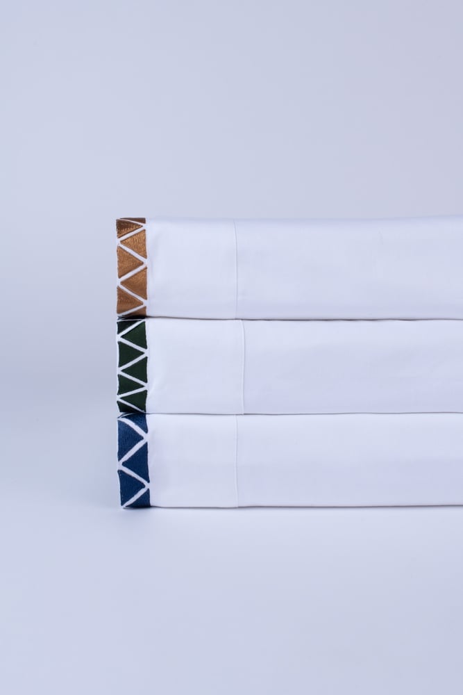Sleek, 400 thread count cotton sateen sheeting finished with an elegant hem stitch and off-set facing triangles, in bold hues of Indigo, Kale and Peacock for a chic style.Also available as Duvet Cover.