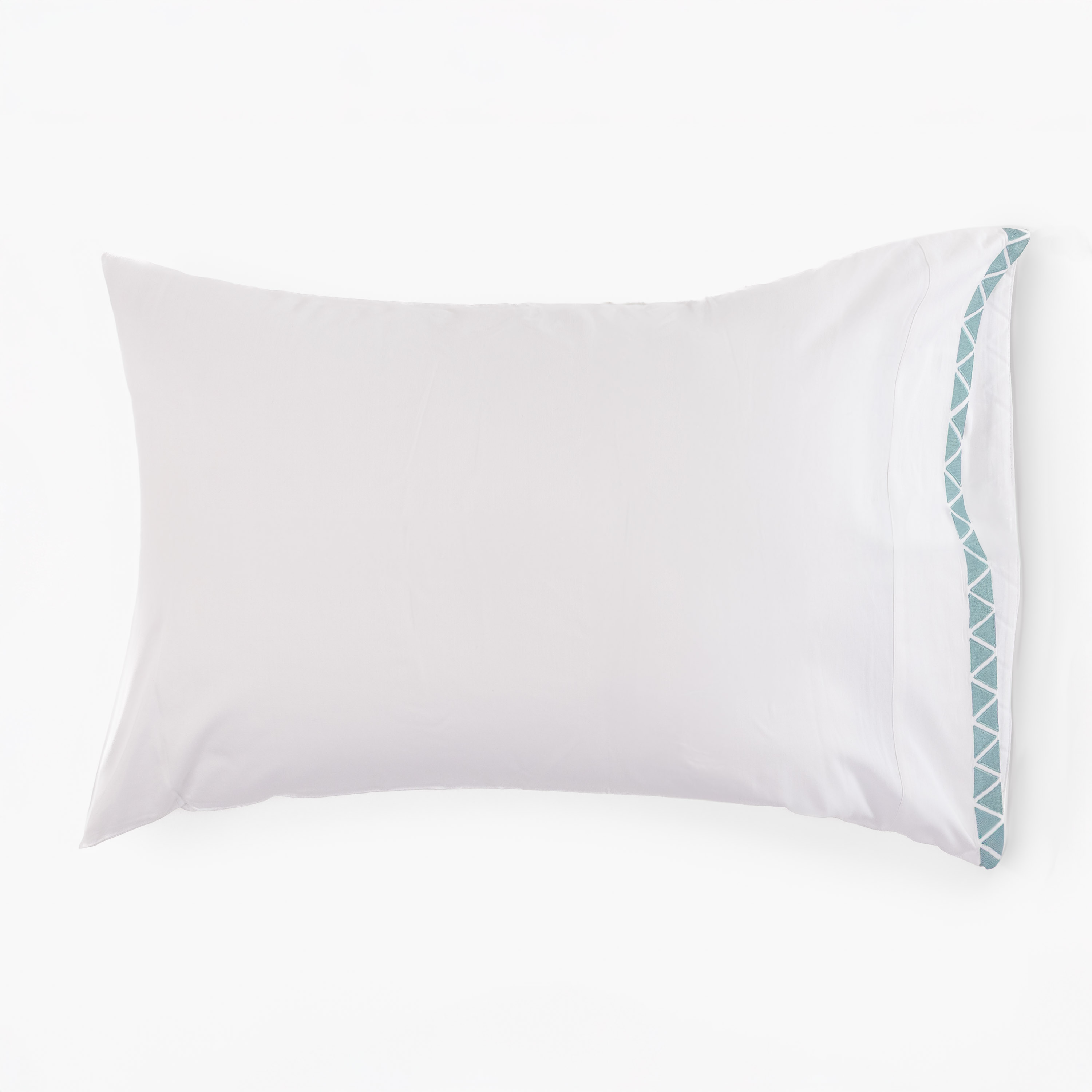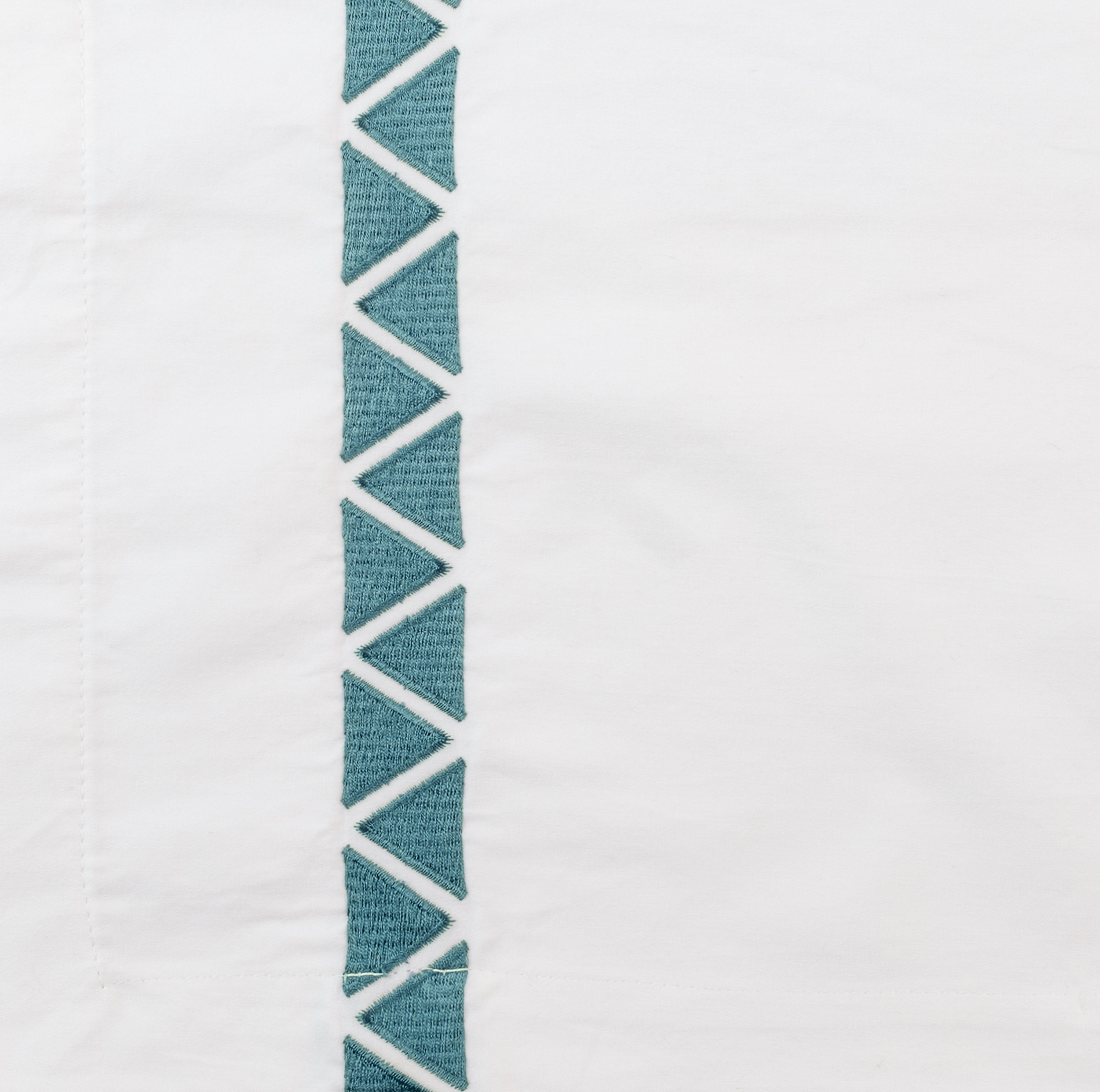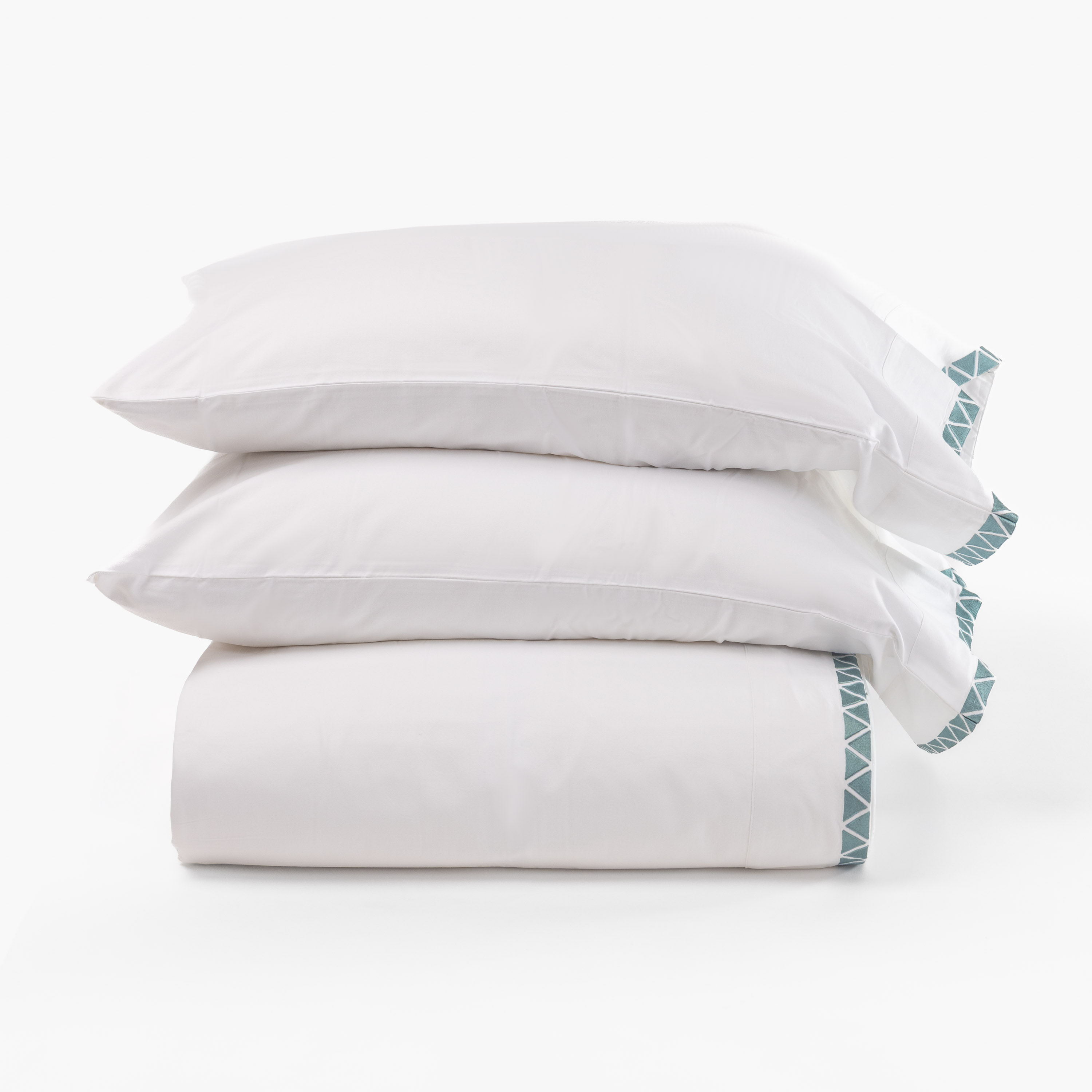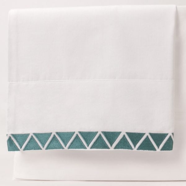 Sleek, 400 thread count cotton sateen sheeting finished with an elegant hem stitch and off-set facing triangles, in bold hues of Indigo, Kale and Peacock for a chic style. . Also available as Duvet Cover.