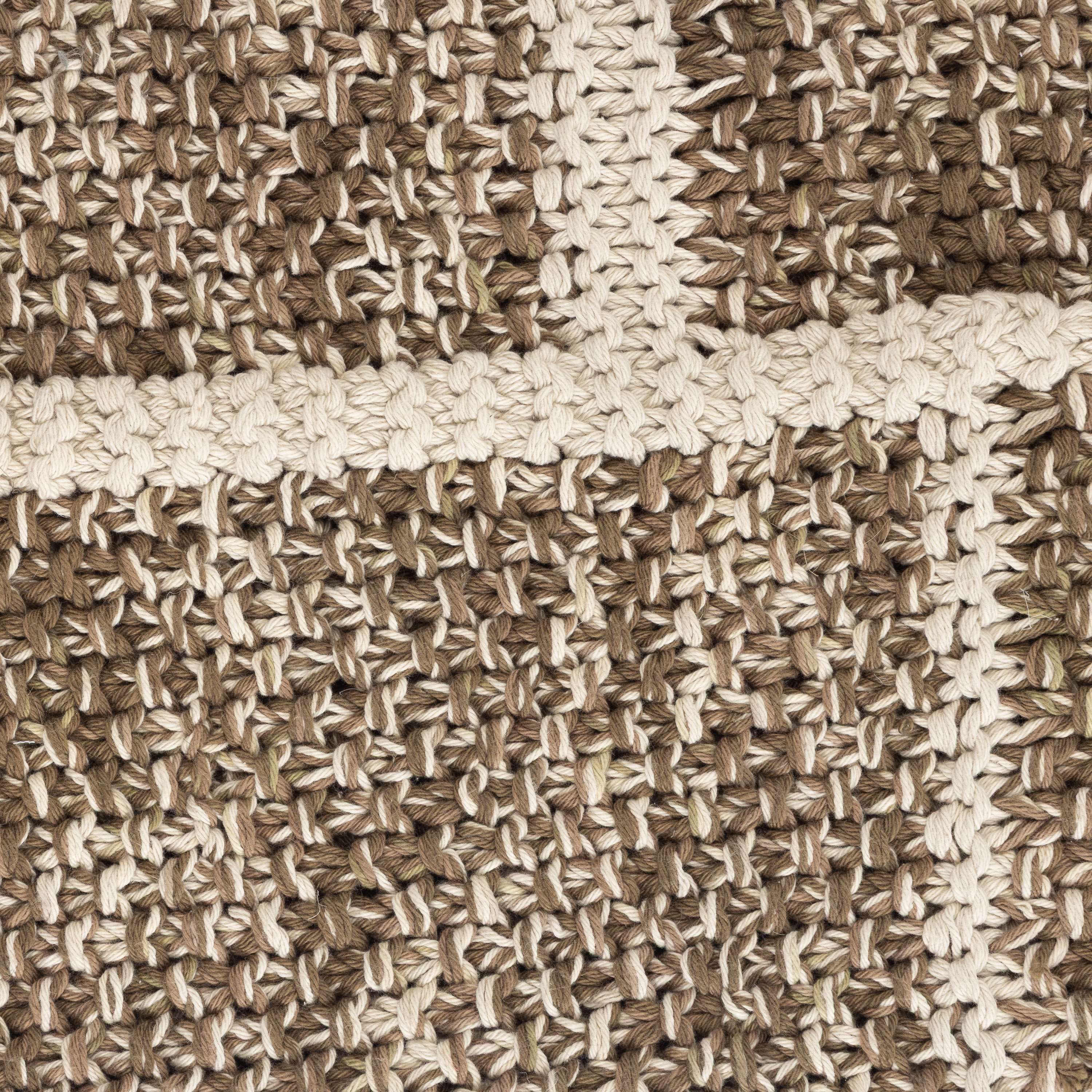 This hand-knit throw is crafted from space-dyed cotton yarn, giving each piece a uniquely marbled, tonal effect. Substantial in weight, it offers comforting warmth and a rich, tactile presence. The neutral, asymmetrical striping pattern adds visual interest with an understated edge, blending modern design with handcrafted charm.