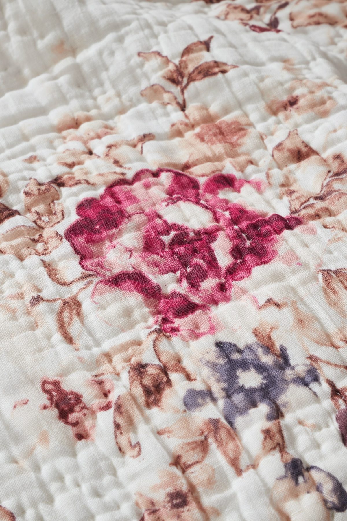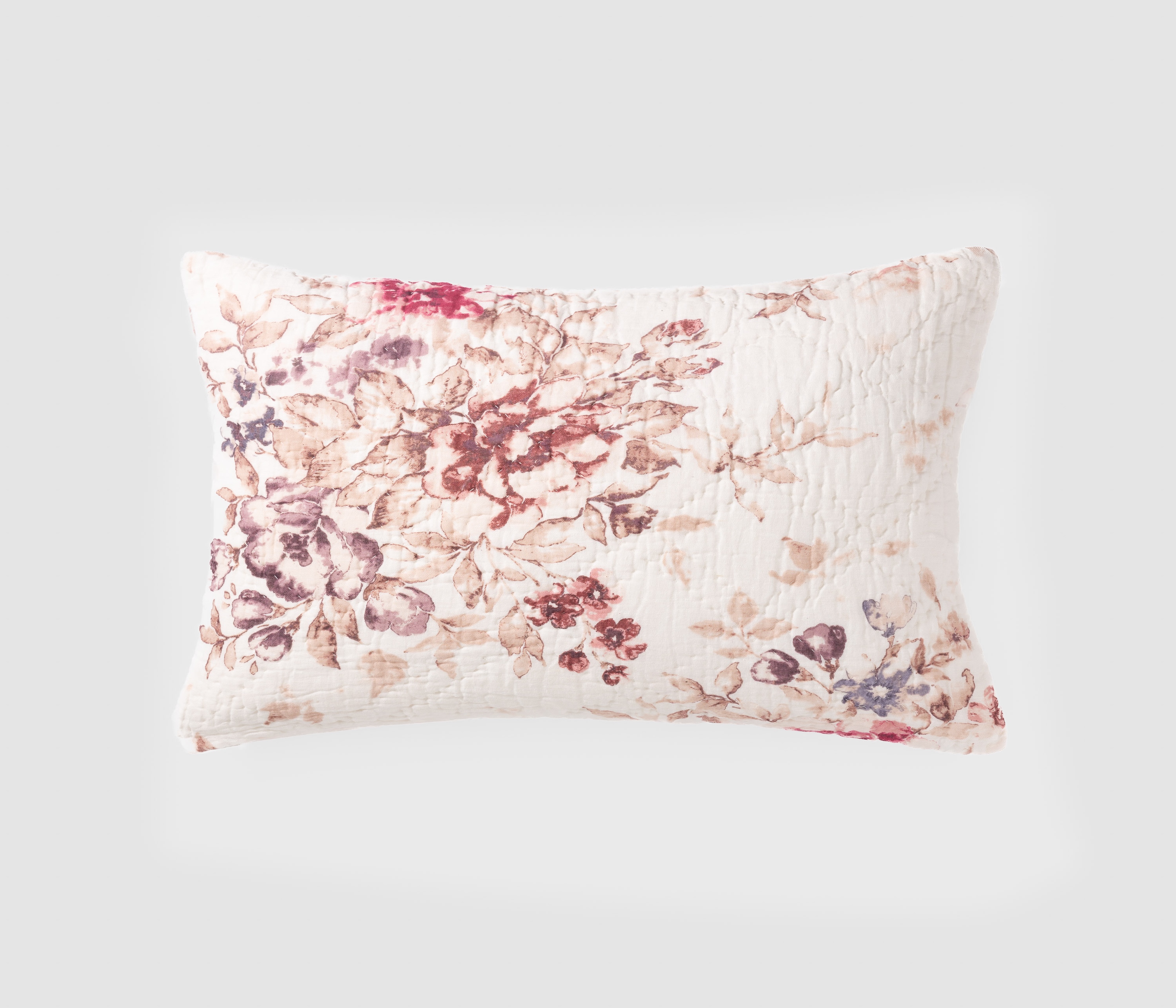 Dramatically scaled floral patterned watercolor print on an ivory base. Hand quilted with double diamond pattern.