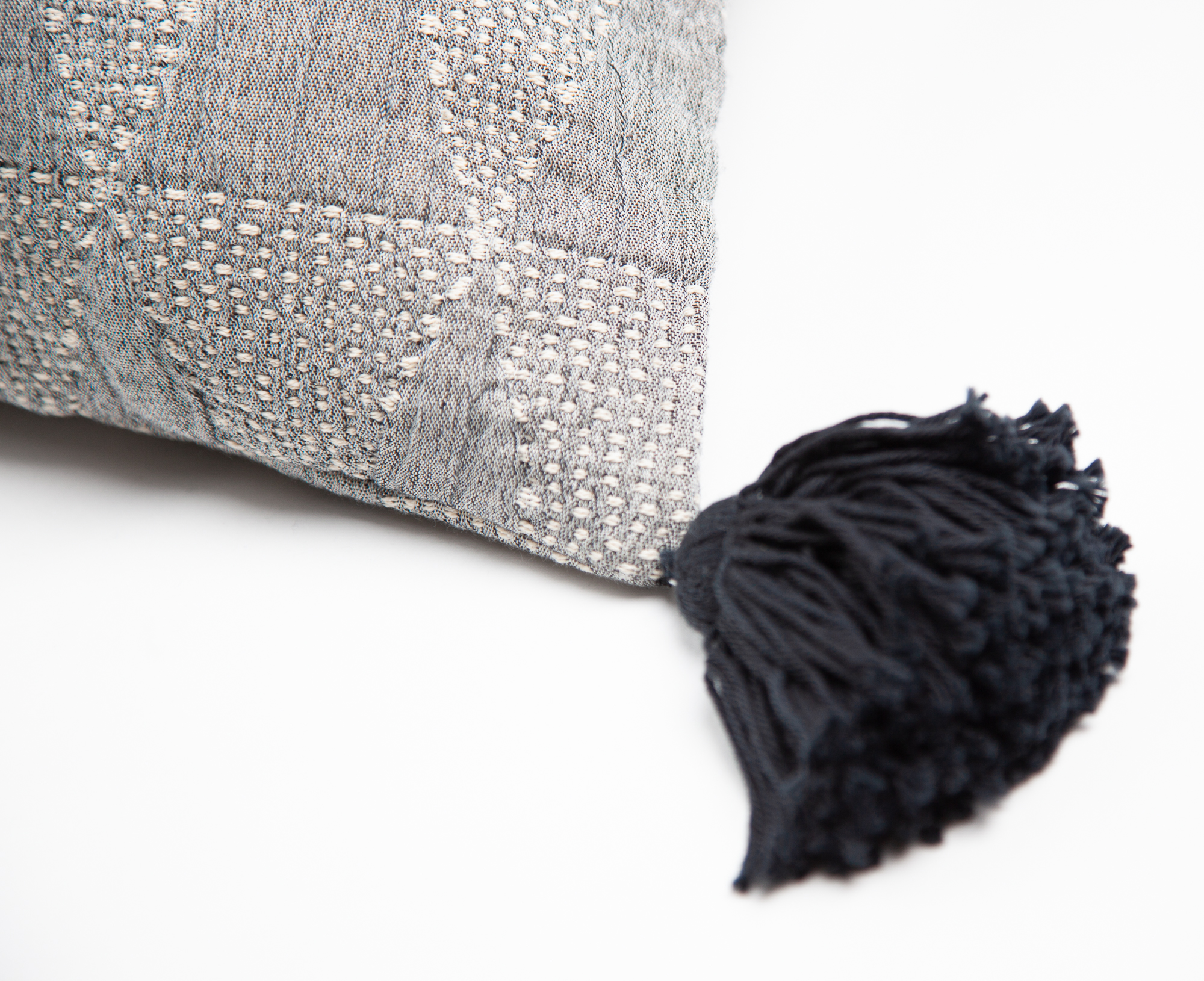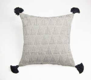 Zion, constructed just like Morse, is inspired by a traditional kantha embroidery technique and woven into a cuddly soft cloth. The hand tied tassels surround the coverlet and double tassels adorn each corner of the shams add an artisanal edge to this collection.