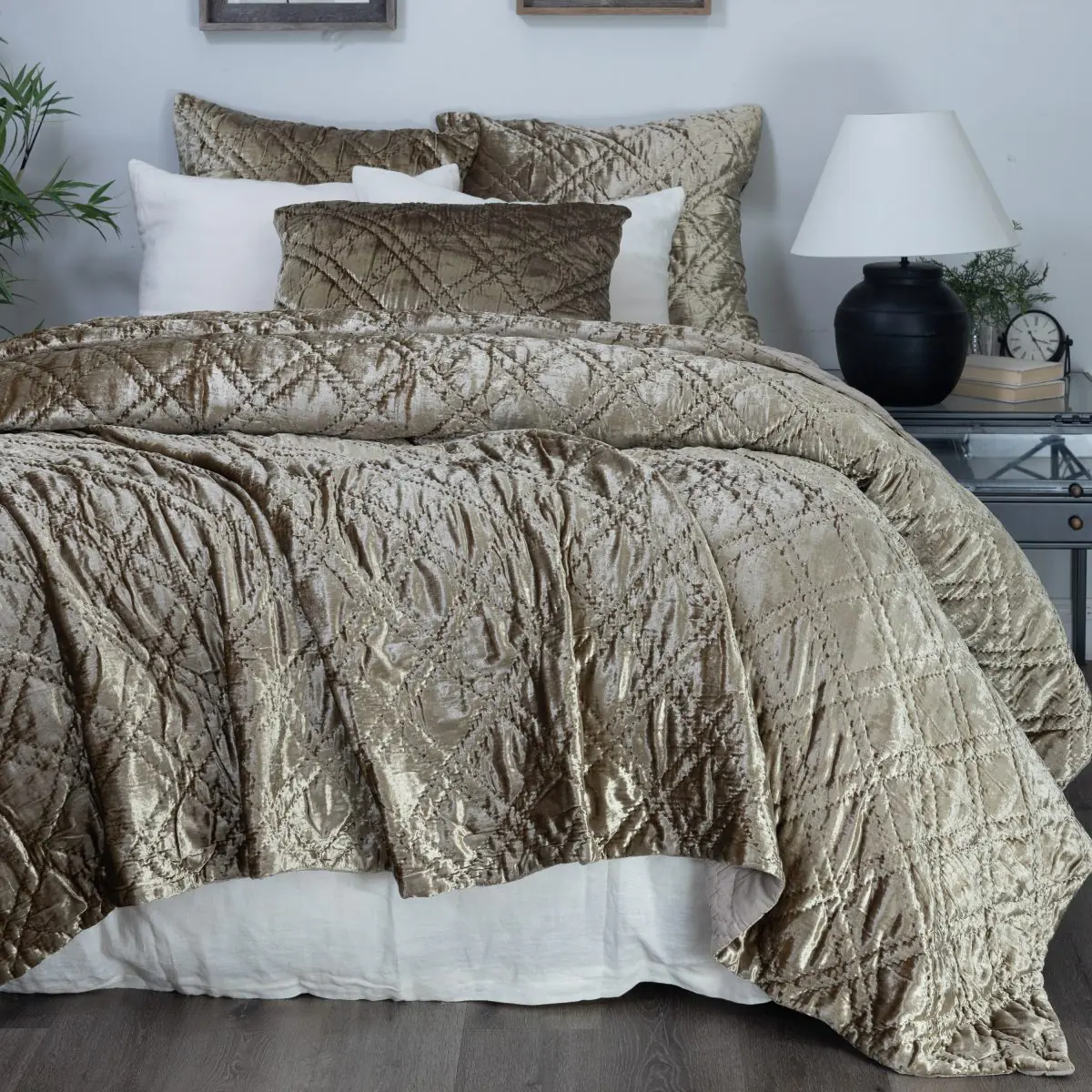 2. The Classic Diamond: Simona Rayon Velvet Quilt